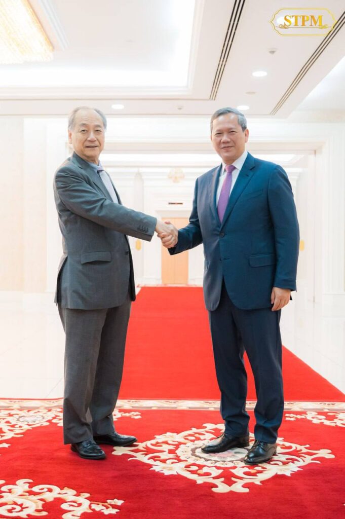ភ្នំពេញ ៖ នាព្រឹកថ្ងៃទី១១ ខែវិច្ឆិកា ឆ្នាំ២០២៥, សម្តេចមហាបវរធិបតី ហ៊ុន ម៉ាណែត នាយករដ្ឋមន្ត្រី នៃព្រះរាជាណាចក្រកម្ពុជា បានអនុញ្ញាតឱ្យ ឯកឧត្តម តាកាហាស៊ី ហ្វូមីអាគី (TAKAHASHI Fumiaki) ប្រធានសមាគមជប៉ុន-កម្ពុជា និងគណៈប្រតិភូ ធុរជន ចូលជួបសម្ដែងការគួរសម និងពិភាក្សាការងារ នៅវិមានសន្តិភាព។