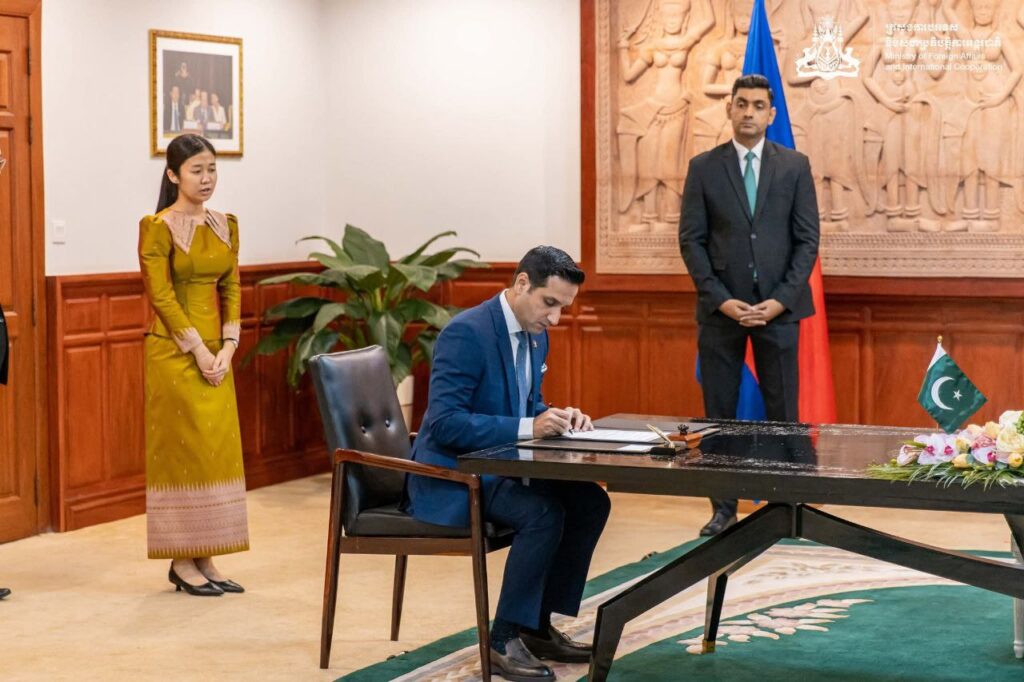 ភ្នំពេញ ៖ នៅព្រឹកថ្ងៃទី១១ ខែវិច្ឆិកា ឆ្នាំ២០២៥ ឯកឧត្តម ប្រាក់ សុខុន ឧបនាយករដ្ឋមន្រ្តី រដ្ឋមន្រ្តីការបរទេស និងសហប្រតិបត្តិការអន្តរជាតិ បានអញ្ជើញជាអធិបតីភាពដ៏ខ្ពង់ខ្ពស់ ក្នុងពិធីចុះហត្ថលេខាលើអនុស្សរណៈនៃការយោគយល់គ្នា ស្ដីពីកិច្ចពិគ្រោះយោបល់ និងកិច្ចសហប្រតិបត្តិការរវាងក្រសួងការបរទេស និងសហប្រតិបត្តិការអន្តរជាតិ នៃព្រះរាជាណាចក្រកម្ពុជា និងក្រសួងការបរទេស នៃសាធារណរដ្ឋអ៊ីស្លាមប៉ាគីស្ថាន។