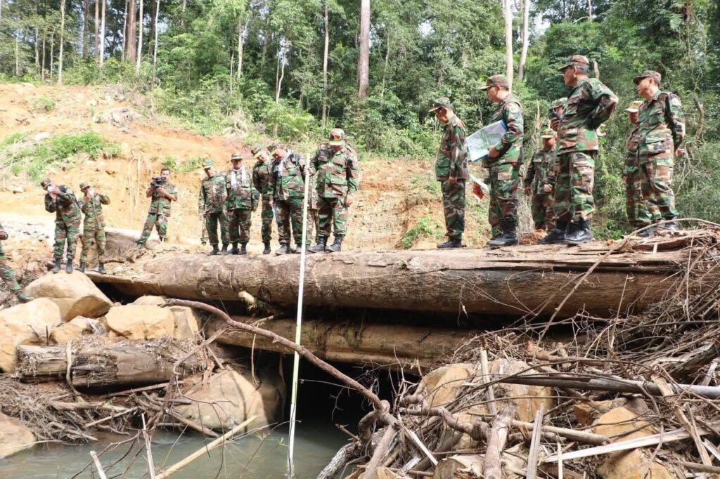 នាយឧត្តមសេនីយ៍ ខ្វាន់ ស៊ាម អគ្គមេបញ្ជាការរង នៃកងយោធពលខេមរភូមិន្ទ និងជាមេបញ្ជាការ បញ្ជាការដ្ឋានវិស្វកម្ម បានដឹកនាំក្រុមការងារចុះពិនិត្យវឌ្ឍនភាពនៃការស្ថាបនាផ្លូវខ្សែក្រវាត់ព្រំដែនកម្ពុជា-វៀតណាម ក្នុងភូមិសាស្ត្រស្រុកពេជ្រាដា និងស្រុកអូររាំង ខេត្តមណ្ឌលគិរី កាលពីថ្ងៃទី១០-១១ ខែវិច្ឆិកា ឆ្នាំ២០២៥។