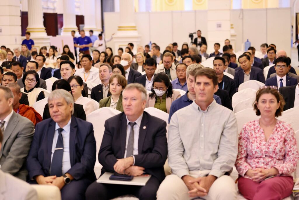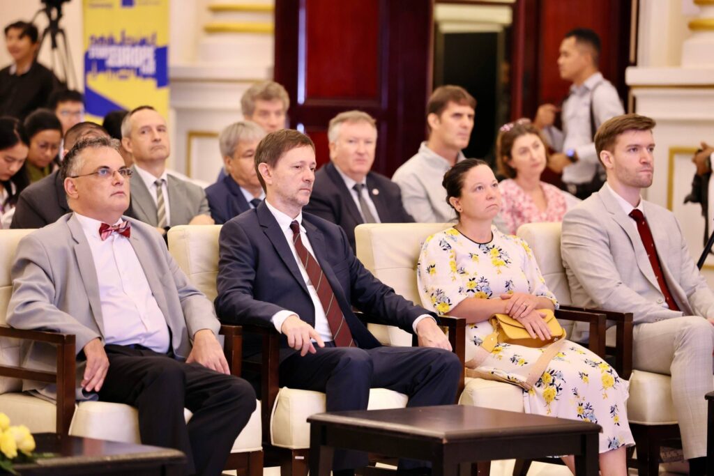 រាជធានីភ្នំពេញ៖ នាព្រឹកថ្ងៃទី១២ ខែវិច្ឆិកា ឆ្នាំ២០២៥ ឯកឧត្តមបណ្ឌិតសភាចារ្យ ហង់ជួន ណារ៉ុន ឧបនាយករដ្ឋមន្ត្រី រដ្ឋមន្ត្រីក្រសួងអប់រំ យុវជន និងកីឡា និង ឯកឧត្តម អ៊ីហ្កូ ទ្រីសម៉ាន់ ឯកអគ្គរដ្ឋទូតសហភាពអឺរ៉ុប (EU) ប្រចាំព្រះរាជាណាចក្រកម្ពុជា បានអញ្ជើញចូលរួមជាគណៈអធិបតី ក្នុងពិធីបើកសម្ពោធ កិច្ចសន្ទនារវាងសាកលវិទ្យាល័យ វិទ្យាស្ថានស្រាវជ្រាវ និងវិស័យឯកជន នៃប្រទេសកម្ពុជា និងអឺរ៉ុប ដែលជាផ្នែកមួយនៃ ពិព័រណ៍ការសិក្សានៅប្រទេសក្នុងសហភាពអឺរ៉ុប លើកទី៤ (Study in Europe Fair) សម្រាប់សិស្សនិស្សិតកម្ពុជា និងមានការចូលរួមពីសំណាក់ ឯកឧត្តម ហែម វណ្ណឌី រដ្ឋមន្រ្តីក្រសួងឧស្សាហកម្ម វិទ្យាសាស្ត្រ បច្ចេកវិទ្យា និងនវានុវត្តន៍ ឯកឧត្តម ហេង សួរ រដ្ឋមន្ត្រីក្រសួងការងារ និងបណ្តុះបណ្តាលវិជ្ជាជីវៈ ឯកឧត្តម លោកជំទាវ ថ្នាក់ដឹកនាំក្រសួងពាក់ព័ន្ធ តំណាងសាកលវិទ្យាល័យជាច្រើនមកពីប្រទេសក្នុងសហភាពអឺរ៉ុប ភាគីពាក់ព័ន្ធជាតិ និងអន្តរជាតិ។