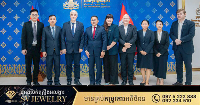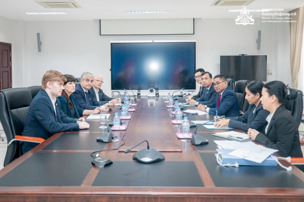 ភ្នំពេញ ៖ នៅព្រឹកថ្ងៃទី ១២ ខែវិច្ឆិកា ឆ្នាំ២០២៥ ឯកឧត្ដម នង សាកល អនុរដ្ឋលេខាធិការនៃក្រសួងការបរទេស និងសហប្រតិបត្តិការអន្តរជាតិ បានទទួលជួបសន្ទនាជាមួយឯកឧត្ដម Danny Annan ឯកអគ្គរាជទូតវិសាមញ្ញនិងពេញសមត្ថភាពនៃព្រះរាជាណាចក្រដាណឺម៉ាក ប្រចាំព្រះរាជាណាចក្រកម្ពុជា ដែលមាននិវេសនដ្ឋាននៅទីក្រុងបាងកក នៅទីស្ដីការក្រសួង។