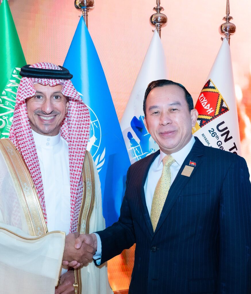 រាជធានីរីយ៉ាដ ៖ នាឱកាសដឹកនាំគណៈប្រតិភូជាន់ខ្ពស់ក្រសួងទេសចរណ៍ ចូលរួមមហាសន្និបាតលើកទី២៦ នៃអង្គការទេសចរណ៍សហប្រជាជាតិ (UN Tourism- 26th General Assembly) នៅរាជធានីរីយ៉ាដ ឯកឧត្តម ហួត ហាក់ រដ្ឋមន្ត្រីក្រសួងទេសចរណ៍ បានជួបពិភាក្សាការងារកម្រិតខ្ពស់ជាមួយឯកឧត្តម Ahmed Al-Khateeb រដ្ឋមន្រ្តីក្រសួងទេសចរណ៍ នៃព្រះរាជាណាចក្រអារ៉ាប៊ីសាអូឌីតអំពីកិច្ចសហប្រតិបត្តិលើវិស័យទេសចរណ៍រវាងកម្ពុជា និងព្រះរាជាណាចក្រអារ៉ាប៊ីសាអូឌីត។
