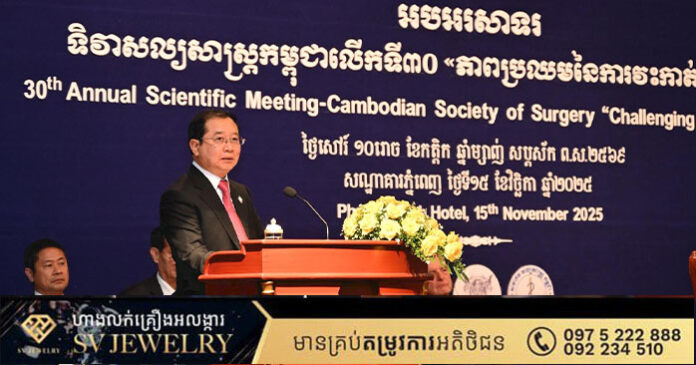 ឯកឧត្តមសាស្ត្រាចារ្យ ឈាង រ៉ា រដ្ឋមន្រ្តីក្រសួងសុខាភិបាល បានអញ្ជើញជាអធិបតីក្នុងពិធីបើកសន្និសីទសល្យសាស្ត្រកម្ពុជាប្រចាំឆ្នាំ លើកទី៣០ ក្រោមប្រធានបទ «ភាពប្រឈមនៃការវះកាត់ជំងឺមហារីក» ថ្ងៃសៅរ៍ ១០រោច ខែកត្តិក ឆ្នាំម្សាញ់ សប្តស័ក ព.ស.២៥៦៩ ត្រូវនឹងថ្ងៃទី១៥ ខែវិច្ឆិកា ឆ្នាំ២០២៥។