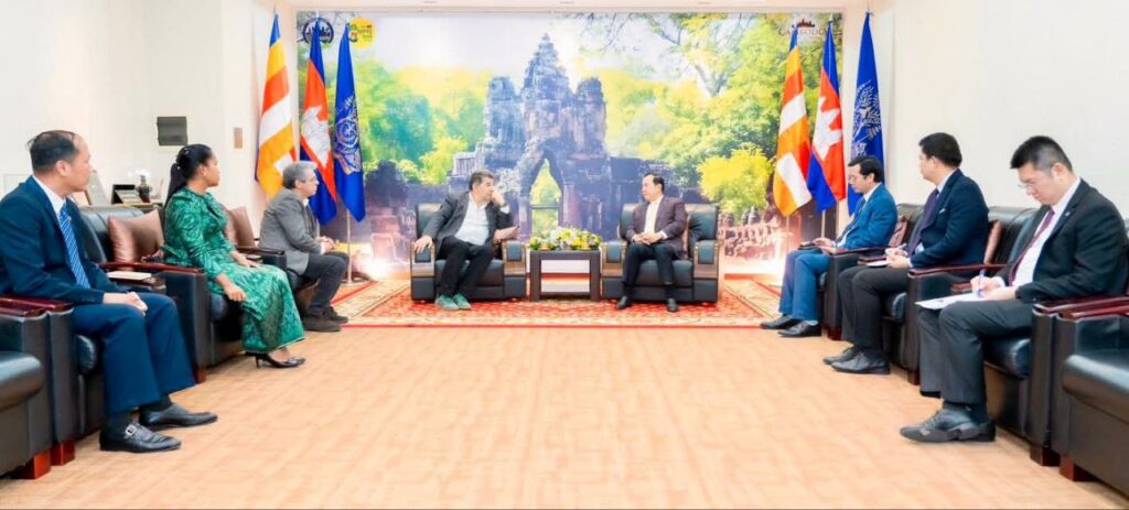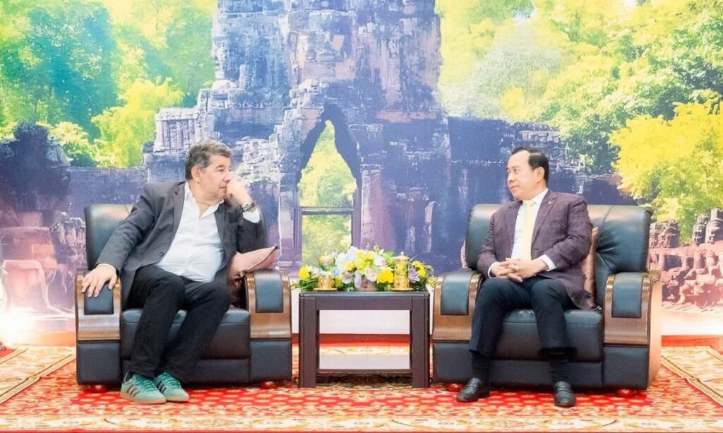 រាជធានីភ្នំពេញ ៖ ថ្ងៃទី១៦ ខែវិច្ឆិកា ឆ្នាំ២០២៥។ឯកឧត្តម ហួត ហាក់ រដ្ឋមន្រ្តីក្រសួងទេសចរណ៍ បានអនុញ្ញាតជូនលោក Michaël Darmon និងលោក Yves Derai អ្នកកាសែត ផលិតករ និងអ្នកនិពន្ធដ៏ល្បីរបស់ស្ថានីយទូរទស្សន៍អន្តរជាតិ TV5 Monde ដ៏ធំមួយក្នុងពិភពលោកដែលមានទស្សនិកជនជាង ៤២១លាននាក់ ចូលជួបសម្តែងការគួរសម និងពិភាក្សាការងារផ្លាស់ប្តូរយោបល់ ព្រមស្នើសុំអនុសាសន៍ណែនាំលើគម្រោងថតភាពយន្តឯកសារស្តីពី “ការរីកចម្រើនរុងរឿងរបស់កម្ពុជា” ក្រោមការដឹកនាំដ៏ត្រឹមត្រូវ ប្រកបដោយគតិបណ្ឌិត និងចុក្ខវិស័យវែងឆ្ងាយរបស់រាជរដ្ឋាភិបាលកម្ពុជាចាប់តាំងពីអាណត្តិរបស់សម្តេចតេជោ រហូតមកដល់សម្តេចធិបតី។