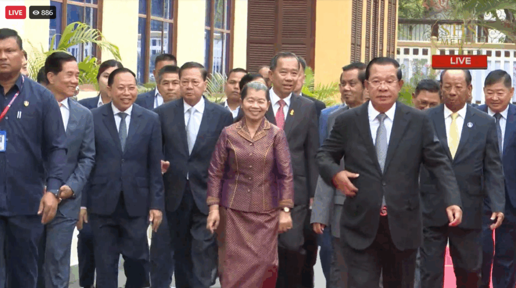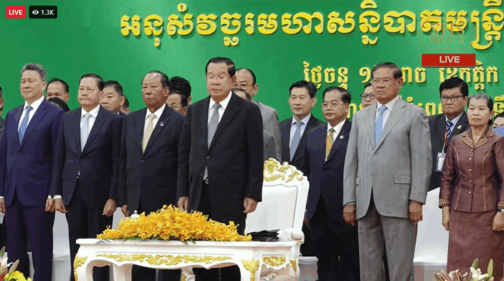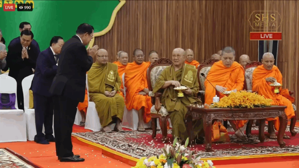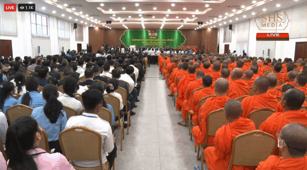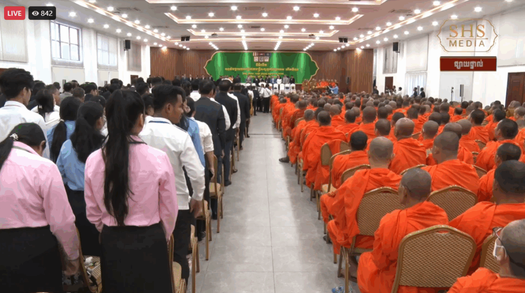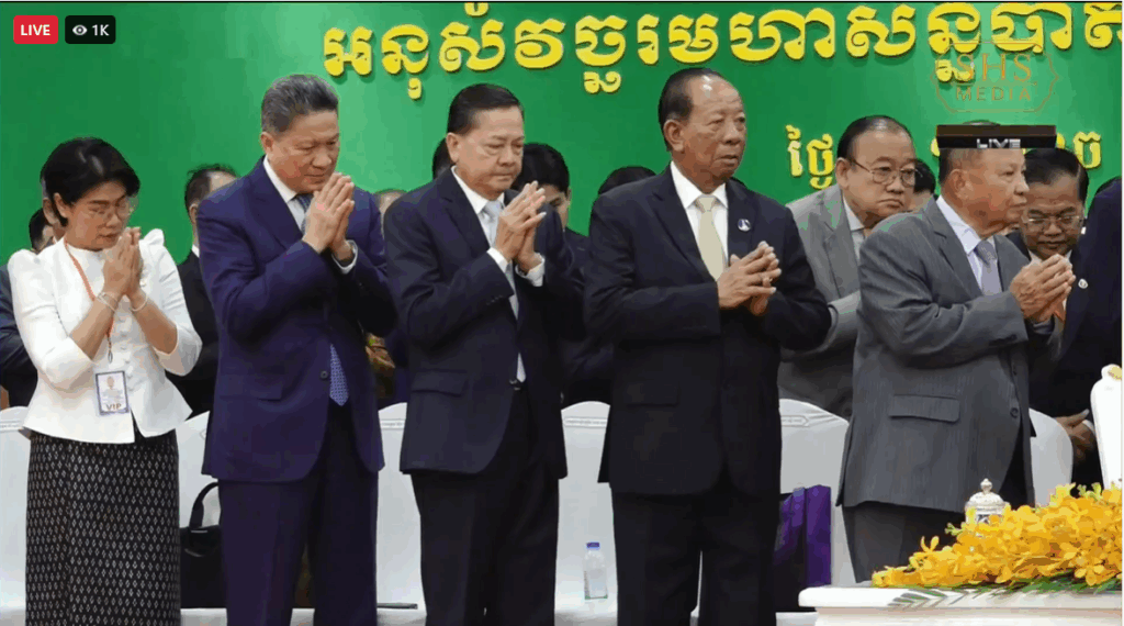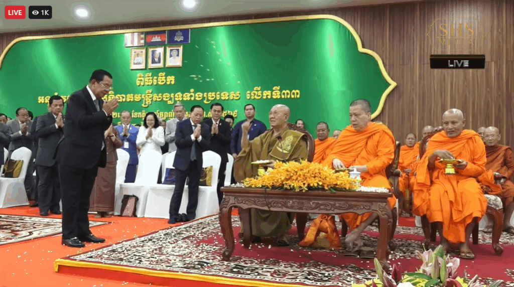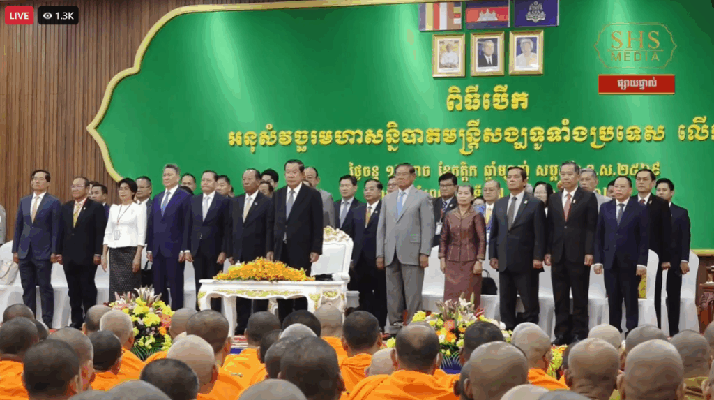 ភ្នំពេញ ៖ សម្ដេចអគ្គមហាសេនាបតីតេជោ ហ៊ុន សែន ប្រធានព្រឹទ្ធសភានៃព្រះរាជាណាចក្រកម្ពុជា និងជាប្រធានក្រុមឧត្តមប្រឹក្សាផ្ទាល់ព្រះមហាក្សត្រ ព្រះរាជតំណាងដ៏ខ្ពង់ខ្ពស់បំផុត ព្រះករុណាព្រះបាទ សម្ដេចព្រះបរមនាថ នរោត្ដម សីហមុនី ព្រះមហាក្សត្រនៃព្រះរាជាណាចក្រកម្ពុជា អញ្ជើញជាអធិបតី ក្នុងពិធីអនុសំវច្ឆរមហាសន្និបាតមន្ត្រីសង្ឃទូទាំងប្រទេស លើកទី៣៣ ឆ្នាំ២០២៥។ ពិធីនេះបានធ្វើឡើងនាវិទ្យាស្ថានជាតិអប់រំ, ព្រឹកថ្ងៃចន្ទ ១២រោច ខែកត្តិក ឆ្នាំម្សាញ់ សប្តស័ក ពុទ្ធសករាជ ២៥៦៩ ត្រូវនឹងថ្ងៃទី១៧ ខែវិច្ឆិកា ឆ្នាំ២០២៥៕ រក្សាសិទ្ធដោយ៖សុទ្ធលី