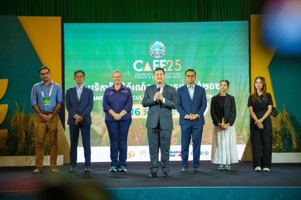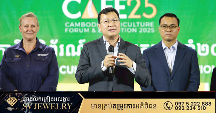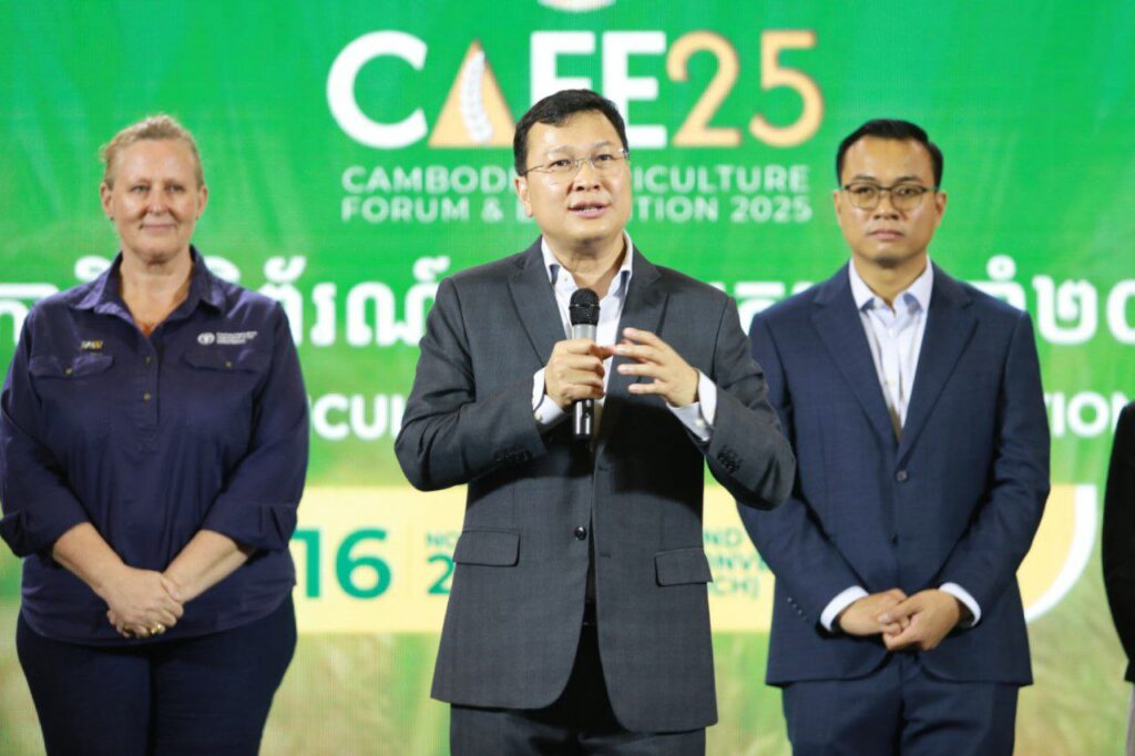 ភ្នំពេញ ៖ នាល្ងាចថ្ងៃទី១៦ ខែវិច្ឆិកា ឆ្នាំ២០២៥ ឯកឧត្តម ឌិត ទីណា រដ្ឋមន្រ្តីក្រសួងកសិកម្ម រុក្ខាប្រមាញ់ និងនេសាទ បានអញ្ជេីញជាអធិបតីភាពដ៏ខ្ពង់ខ្ពស់ក្នុងពិធីបិទវេទិកា និងពិព័រណ៍កសិកម្មកម្ពុជា (CAFE25) នៅមជ្ឈមណ្ឌលសន្និបាត និងពិព័រណ៍កោះពេជ្រ រាជធានីភ្នំពេញ។
