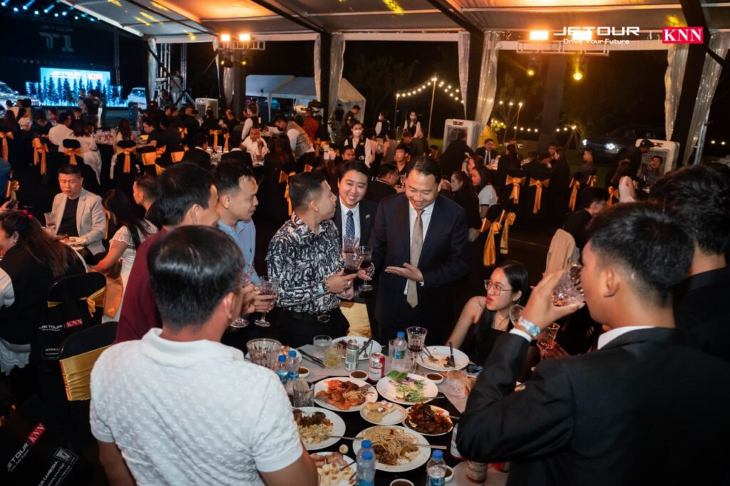 កម្មវិធីបើកសម្ពោធនេះ មានវត្តមានដ៏ខ្ពង់ខ្ពស់ពី អ្នកឧកញ៉ា ជាម ឃុនណាត ប្រធានក្រុមប្រឹក្សាភិបាល នៃក្រុមហ៊ុន ខេ អិន អិន ខេមបូឌា និងលោកជំទាវ ព្រមទាំង គណៈគ្រប់គ្រង ខេ អិន អិន ខេមបូឌា ថ្នាក់ដឹកនាំ Jetour International អតិថិជនរបស់ Jetour Cambodia រួមទាំងក្រុមសិល្បៈករ សិល្បៈការនី អ្នកផលិតមាតិការរថយន្តល្បីៗចូលរួមជាភ្ញៀវកិត្តិយសរាប់រយនាក់ផងដែរ។ មុនពេលចាប់ផ្តើមកម្មវិធីបើកសម្ពោធ អង្គពិធីទាំងមូលបានចូលរួមគោរពដល់វិញ្ញាណក្ខន្ធនៃប្រជាពលរដ្ឋស្លូតត្រង់នៃភូមិព្រៃចាន់ ជាពិសេសវីរកងទ័ពជួរមុខ ដែលបានពលីជីវិត ក្នុងសមរភូមិ។