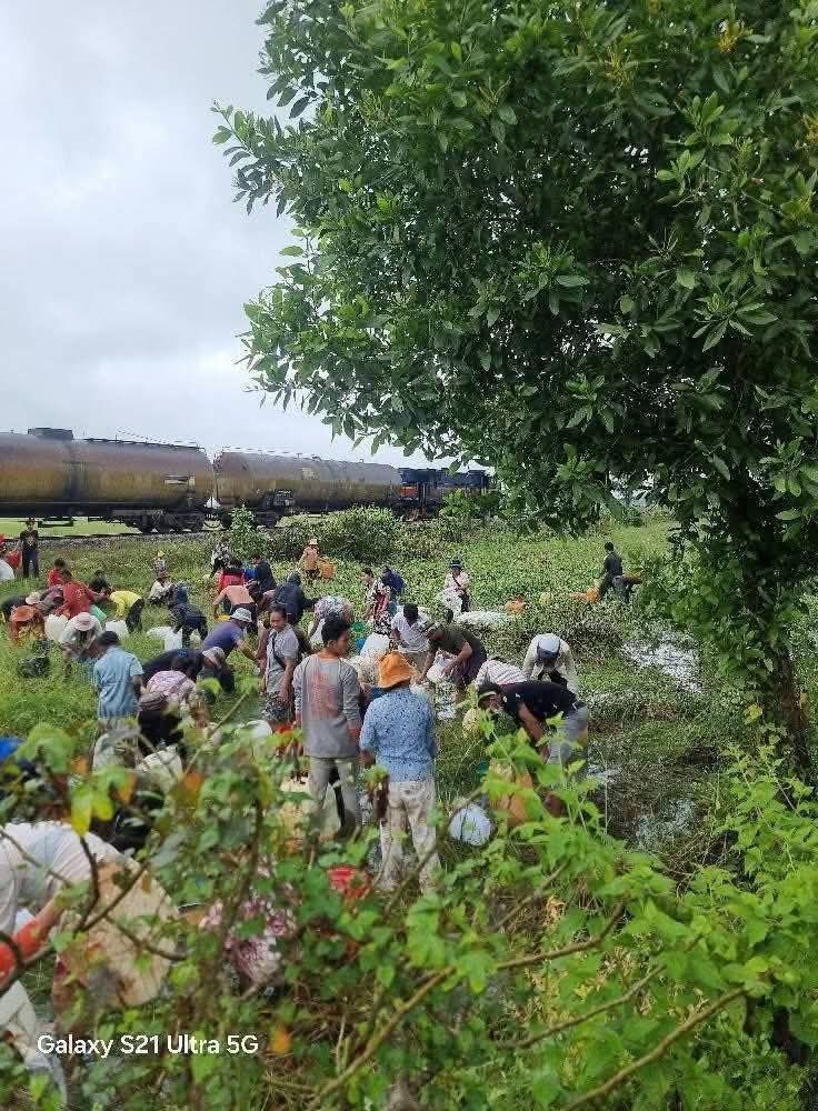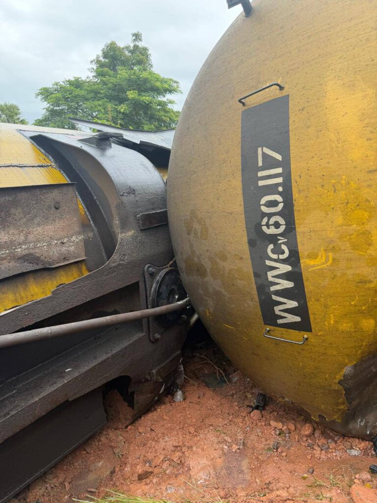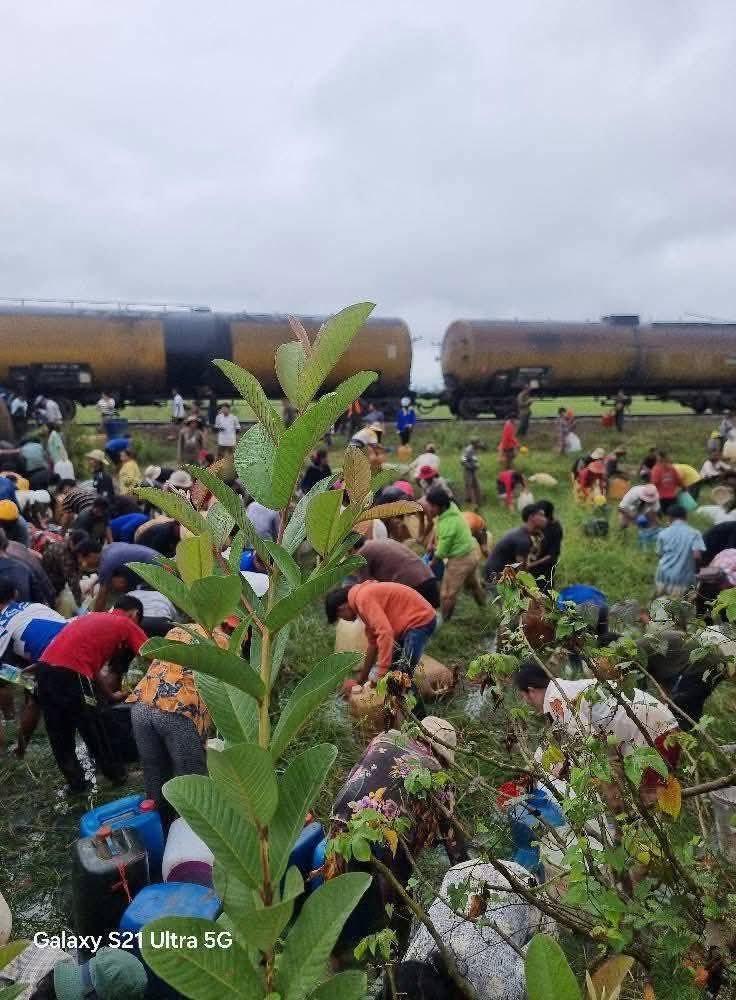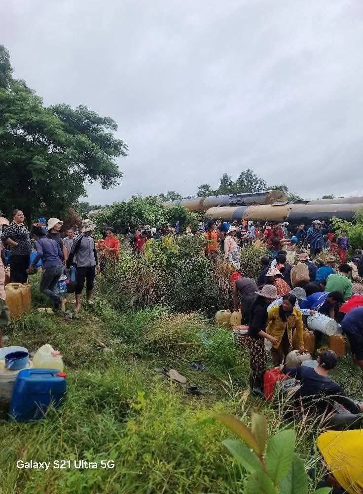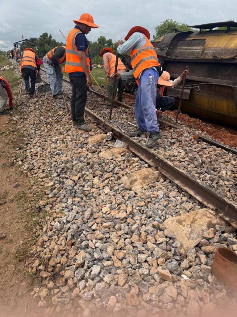 វិធានការណ៍បន្ទាន់៖ • ក្រុមហ៊ុន រ៉ូយ៉ាល់ រ៉េល បានបញ្ជូនអ្នកគ្រប់គ្រងសុវត្ថិភាពម្នាក់ និងក្រុមជួសជុលផ្លូវដែក ទៅកន្លែង កើតហេតុ • រថយន្តបូមប្រេងពីក្រុមហ៊ុនសូគីម៉ិចបានមកដល់កន្លែងដើម្បី ប្រមូលប្រេងឥន្ធនៈដែលកំពប់ • រថយន្តស្ទូចចំនួន២គ្រឿងត្រូវបានបញ្ជូនទៅកាន់កន្លែងកើតហេតុ ហើយមានចម្ងាយប្រមាណ២០គីឡូម៉ែត្រ ៕ រក្សាសិទ្ធដោយ៖សុទ្ធលី
