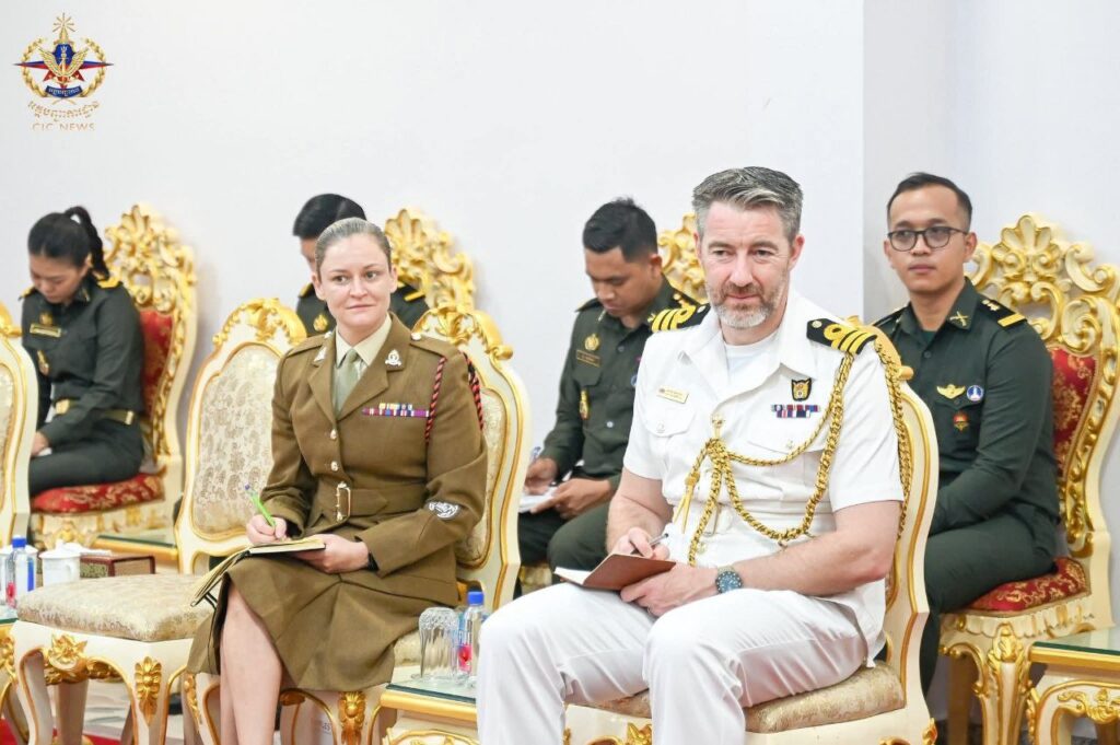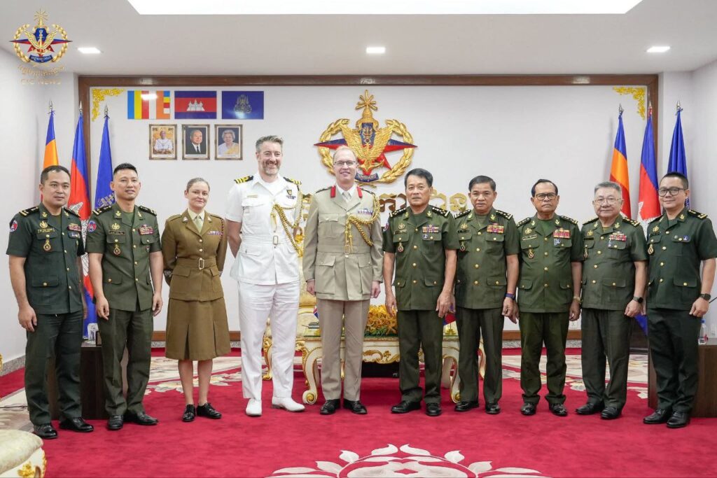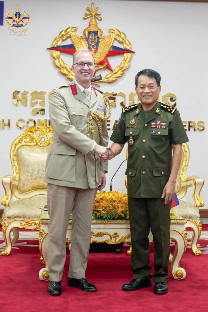ភ្នំពេញ៖ នៅព្រឹកថ្ងៃទី១៨ ខែវិច្ឆិកា ឆ្នាំ២០២៥ ឯកឧត្តម នាយឧត្តមសេនីយ៍ វង្ស ពិសេន អគ្គមេបញ្ជាការ នៃកងយោធពលខេមរភូមិន្ទ បានអនុញ្ញាតឱ្យលោក វរសេនីយ៍ឯក ជូលៀន អ.អិល.ស្មីត សេនានុព័ន្ធចក្រភពអង់គ្លេសថ្មីប្រចាំកម្ពុជា ដែលមាននិវេសនដ្ឋាននៅក្រុងហាណូយ ប្រទេសវៀតណាម ចូលជួបសម្តែងការគួរសម និងពិភាក្សាការងារ នៅអគ្គបញ្ជាការដ្ឋាន។