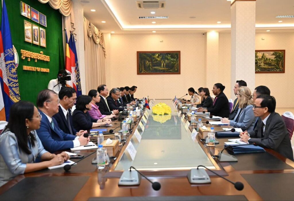 លោកស្រីភារៈធារី បានថ្លែងអំណរគុណដល់ ឯកឧត្តមសាស្ត្រាចារ្យរដ្ឋមន្ត្រី ដែលបានផ្តល់ការគាំទ្រដល់គម្រោងផ្តួចផ្តើមនានារបស់សហរដ្ឋអាមេរិក និងជម្រាបជូនពីការដាក់ចេញ យុទ្ធសាស្ត្រសុខភាពសកលអាមេរិកទីមួយ (America First Global Health Strategy) ដែលនឹងត្រូវអនុវត្តតាមរយៈការរៀបចំអនុស្សរណៈនៃការយោគយល់គ្នា ដើម្បីធានាបាននូវតម្លាភាព និងនិរន្តរភាពរយៈពេលវែងនៃកម្មវិធីជំនួយបរទេសផ្នែកសុខភាពរបស់សហរដ្ឋអាមេរិក ដែលជាផែនការយុទ្ធសាស្ត្រ សន្តិសុខសុខភាពសកល និងបង្ការការឆ្លងរាលដាលនៃជំងឺឆ្លង ដោយលោកស្រីស្នើសុំអនុសាសន៍ លើសេចក្តីព្រាង កិច្ចព្រមព្រៀងទ្វេភាគីថ្មីរវាងសហរដ្ឋអាមេរិក និងកម្ពុជា។