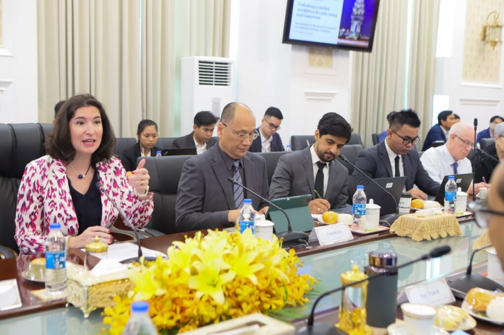 បន្ទាប់មក លោកស្រី ថាញ៉ា មេយ័រ នាយកប្រចាំប្រទេសនៃធនាគារពិភពលោកប្រចាំកម្ពុជា បានសម្តែងនូវសេចក្តីសោមនស្សរីករាយដែលបានចូលរួមកិច្ចប្រជុំពិភាក្សានេះ សំដៅរួមចំណែកដល់ការរៀបចំចក្ខុវិស័យកម្ពុជាឆ្នាំ២០៥០ ប្រកបដោយគុណភាព។ ពាក់ព័ន្ធនឹងប្រធានបទទាំងពីរនេះ លោកស្រីក៏បានបំផុសនូវចំណុចសម្រាប់ការពិភាក្សា ៣ រួមមាន (១) ការកសាងភាពធន់របស់កម្ពុជាស្ថិតក្រោមភាពមិនច្បាស់លាស់នៃស្ថានភាពសេដ្ឋកិច្ចតំបន់ និងសកល (២) ការទាញប្រយោជន៍ពីកម្លាំងពលកម្មកម្ពុជាដែលជាយុវជន និង (៣) ការគិតគូរទាំងលើទិដ្ឋភាពបរិមាណ និងគុណភាពនៃការងារដែលត្រូវបង្កើត។