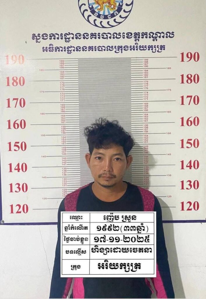 ករណីហិង្សាដោយចេតនាកើតហេតុនៅថ្ងៃទី១៧.១១.២០២៥ វេលាម៉ោង០៩:០០នាទីនៅចំណុចភូមិព្រែកតាកូវ សង្កាត់ព្រែកតាកូវ ក្រុងអរិយក្សត្រ ខេត្ដកណ្ដាល។