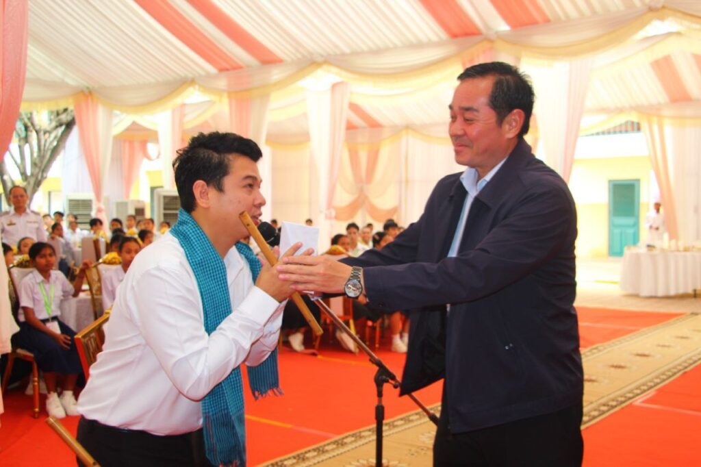 ខេត្តកំពង់ចាម: “ក្មួយៗត្រូវតែទទួលទានអាហារលក់ដូរនៅតាមសាលារៀននីមួយៗដោយប្រុងប្រយ័ត្នធ្វើយ៉ាងណាប្រកាន់ភ្ជាប់”តិចប្រៃ តិចស្ករ តិចខ្លាញ់” ជាមួយនោះមិនត្រូវហូបរបស់ដែលផ្អែមពេកដែលអាចបង្កឲ្យទៅជាជំងឺទឹកនោមផ្អែមប៉ះពាល់សុខភាព”នេះជាប្រសាសន៍លើកឡើងរបស់ឯកឧត្តមអ៊ុន ចាន់ដាអភិបាលខេត្តថ្លែងនៅក្នុងឱកាសពិធីសំណេះសំណាលសួរសុខទុក្ខនិងពិសារអាហារសាមគ្គីជាមួយកុមារពិការភ្នែកគថ្លង់ កុមារកំព្រានៅបរិវេណវិទ្យាល័យអប់រំពិសេសកំពង់ចាម ក្នុងសង្កាត់វាលវង់ ក្រុងកំពង់ចាម នាព្រឹកថ្ងៃទី២១ វិច្ឆិកាឆ្នាំ២០២៥។ដោយធ្វើឡើងក្រោមអធិបតីភាពឯកឧត្តមខៀវ កញារីទ្ធ អតីតរដ្ឋមន្ត្រីក្រសួងព័ត៌មាននិងជាឧត្តមទីប្រឹក្សាផ្ទាល់ព្រះមហាក្សត្រនិងលោកជំទាវ ព្រមទាំងសហការីជាច្រើនអ្នកទៀត។ ដោយអតីតរដ្ឋមន្ត្រីក្រសួងព័ត៌មាន សន្យាក្នុងមួយឆ្នាំត្រូវជួបគ្នាម្ដងជាមួយចៅៗ។