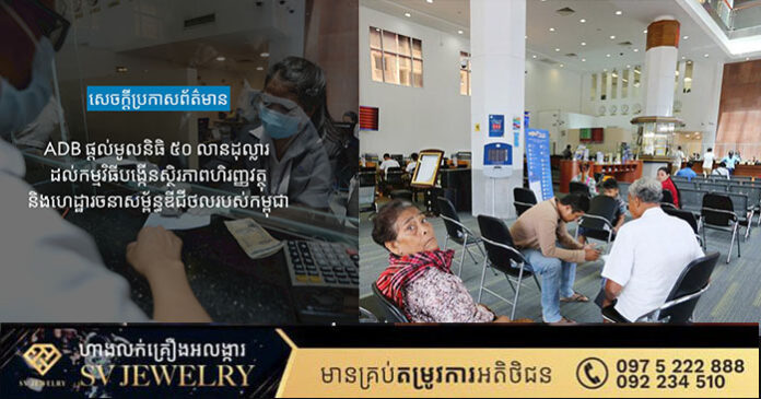 ភ្នំពេញ ៖ នៅថ្ងៃទី២៤ ខែវិច្ឆិកា ឆ្នាំ២០២៥ ធនាគារអភិវឌ្ឍន៍អាស៊ី (ADB) បានអនុម័តវិធីសាស្រ្តកម្មវិធី និងកម្ចីផ្អែកលើគោលនយោបាយចំនួន ៥០ លានដុល្លារ ដើម្បីពង្រឹងវិស័យហិរញ្ញវត្ថុរបស់កម្ពុជា ដោយផ្តោតលើទាំងគ្រឹះស្ថានធនាគារ និង គ្រឹះស្ថានដែលមិនមែនជាធនាគារព្រមទាំងហេដ្ឋារចនាសម្ព័ន្ធហិរញ្ញវត្ថុឌីជីថល និងសមត្ថភាពហិរញ្ញវត្ថុប្រកបដោយនិរន្តរភាព។