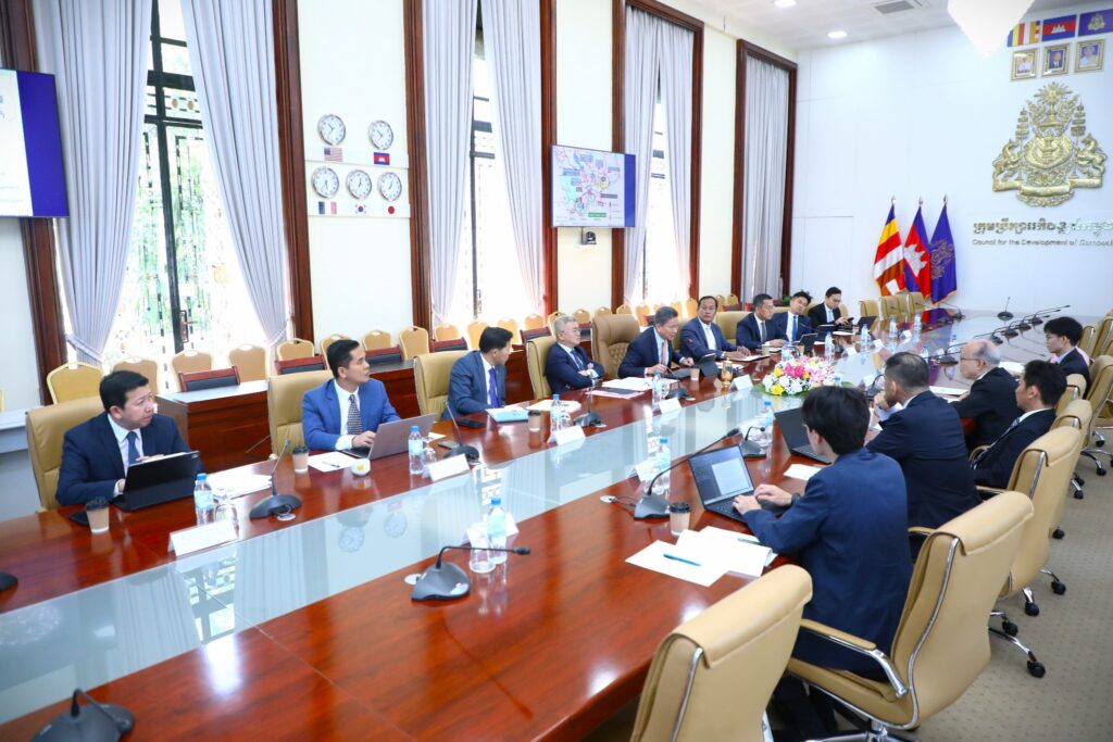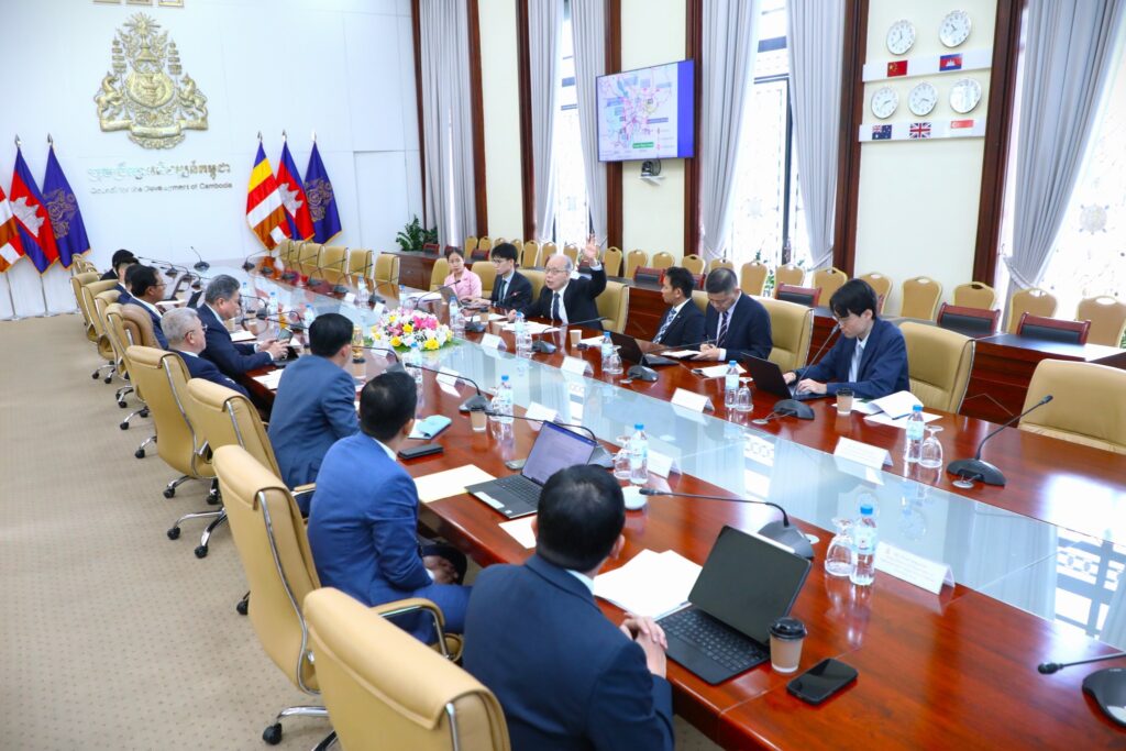 ភ្នំពេញ ៖ ឯកឧត្តម ស៊ុន ចាន់ថុល ឧបនាយករដ្ឋមន្ត្រី អនុប្រធានទី១ ក្រុមប្រឹក្សាអភិវឌ្ឍន៍កម្ពុជា បានទទួលជួបគណៈប្រតិភូមជ្ឈមណ្ឌលស្រាវជ្រាវសេដ្ឋកិច្ចអាស៊ាននិងអាស៊ីបូព៌ា (ERIA) ដឹកនាំដោយលោក YAMADA Yasuhiro មន្ត្រីជាន់ខ្ពស់ផ្នែកគោលនយោបាយ ដើម្បីធ្វើការរាយការណ៍ជូនអំពីវឌ្ឍនភាពនៃការសិក្សាសមិទ្ធិលទ្ធភាព នៃគម្រោងអភិវឌ្ឍន៍តំបន់សេដ្ឋកិច្ចពិសេសបៃតង កម្ពុជា-ជប៉ុន នាក្រុមប្រឹក្សាអភិវឌ្ឍន៍កម្ពុជា នាព្រឹកថ្ងៃចន្ទ ទី២៤ ខែវិច្ឆិកា ឆ្នាំ២០២៥ ។
