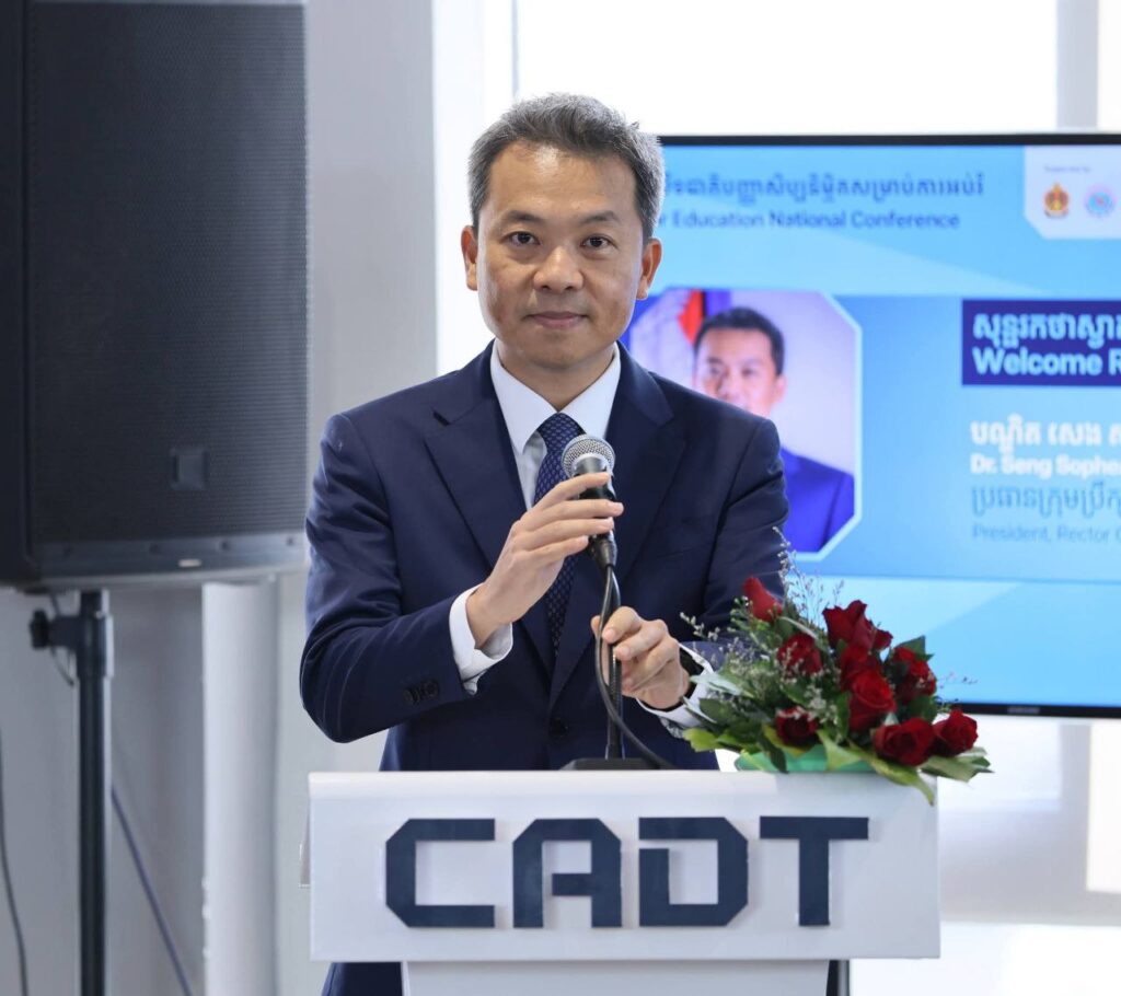 រាជធានីភ្នំពេញ៖ នាព្រឹកថ្ងៃទី២៤ ខែវិច្ឆិកា ឆ្នាំ២០២៥ ឯកឧត្តមបណ្ឌិតសភាចារ្យ ហង់ជួន ណារ៉ុន ឧបនាយករដ្ឋមន្ត្រី រដ្ឋមន្ត្រីក្រសួងអប់រំ យុវជន និងកីឡា បានអញ្ជើញជាអធិបតីក្នុងពិធីបើក សន្និសីទជាតិលើកទី១ ស្តីពី បញ្ញាសិប្បនិម្មិតសម្រាប់ការអប់រំ ឆ្នាំ២០២៥ ដែលប្រព្រឹត្តិទៅនៅ មជ្ឈមណ្ឌលនវានុវត្តន៍ (Innovation Center CADT) ដោយមានការចូលរួមពីសំណាក់ ឯកឧត្តមបណ្ឌិត ជា វ៉ាន់ដេត រដ្ឋមន្ត្រីក្រសួងប្រៃសណីយ៍ និងទូរគមនាគមន៍ ឯកឧត្តម អ៊ីហ្កូ ឌ្រីសម៉ាន់ ឯកអគ្គរដ្ឋទូតសហភាពអឺរ៉ុបប្រចាំកម្ពុជា ឯកឧត្តម លោកជំទាវ ថ្នាក់ដឹកនាំ ក្រសួងអប់រំ យុវជន និងកីឡា និងក្រសួងប្រៃសណីយ៍ និងទូរគមនាគមន៍ តំណាងក្រសួងស្ថាប័នពាក់ព័ន្ធ តំណាងស្ថានទូត ដៃគូអភិវឌ្ឍ ក្រុមប្រឹក្សាសាកលវិទ្យាធិការកម្ពុជា(RCC) សមាជិកសមាគមគ្រឹះស្ថានឧត្តមសិក្សាកម្ពុជា និងសាកលវិទ្យាល័យតាមបណ្ដាលខេត្ត តាមតំណាងគ្រឹស្ថានសិក្សារដ្ឋ និងឯកជន សរុបប្រមាណ ៣៧០នាក់។