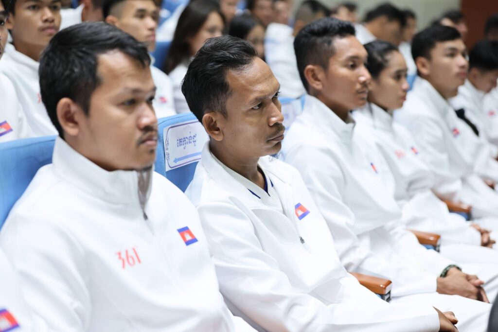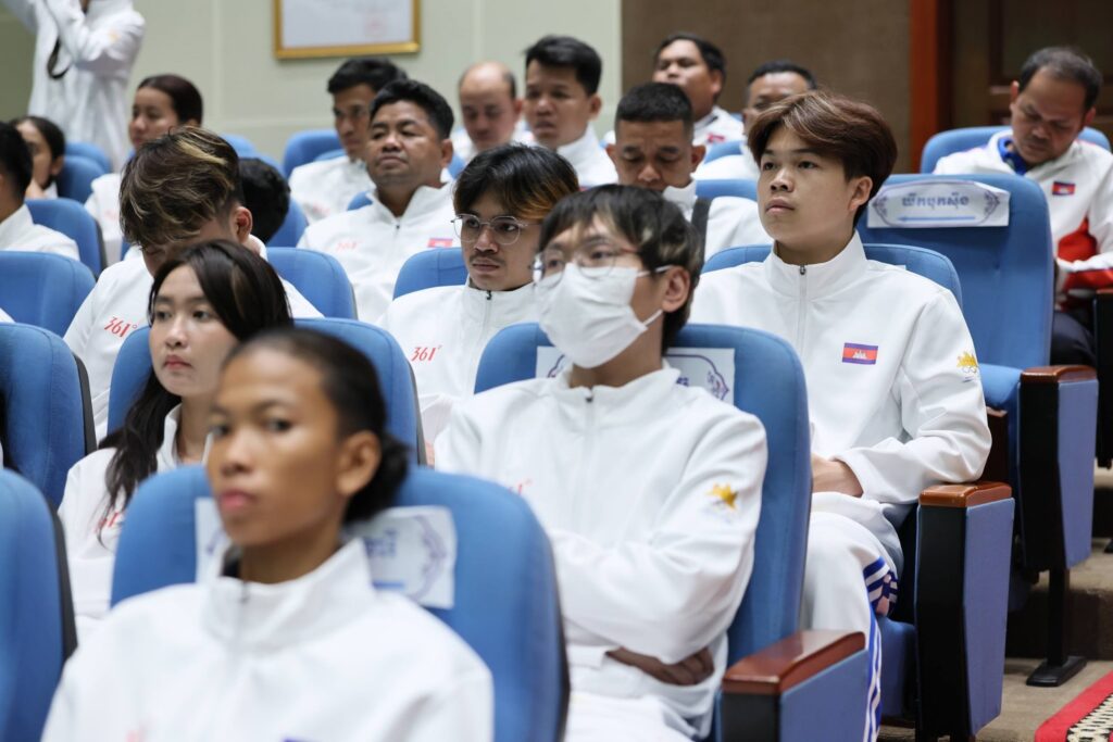 ចំពោះវិធានការវិន័យសម្រាប់ប្រតិភូកីឡាដែលនឹងត្រូវធ្វើដំណើរចូលរួមការប្រកួតខាងមុខនេះ សូមកីឡាករ កីឡាការិនី៖ (១) ចាត់ទុកការចូលរួមប្រកួតលើកនេះខុសពីការប្រកួតមុនៗ ក្រៅពីការប្រកួតកីឡា គឺត្រូវការយកចិត្តទុកដាក់ខ្ពស់បំផុតលើសុវត្ថិភាពផ្ទាល់ខ្លួន សុវត្ថិភាពក្រុម និងសុវត្ថិភាពប្រតិភូកីឡាកម្ពុជា ជាពិសេសផ្តោតលើភាពថ្លៃថ្លូរនៃឥរិយាបថល្អ វាចាល្អ និងប្រព្រឹត្តល្អ អំឡុងពេលប្រកួត ដើម្បីលើកកម្ពស់កិត្តិយសជាតិ និងរក្សាគុណតម្លៃជាតិសាសន៍ខ្មែរលើឆាកអន្តរជាតិ, (២) បើមានស្មារតីជាតិស្រលាញ់ជាតិ និងចង់ឱ្យជាតិសាសន៍យើងមានគេគោរពឱ្យតម្លៃ គឺត្រូវខិតខំប្រកួតប្រជែងដណ្តើមជ័យលាភីឱ្យអស់ពីសមត្ថភាព គោរពបទបញ្ជាការប្រកួត ប្រឆាំងការប្រើប្រាស់សារធាតុ Doping និងបង្ហាញអត្តចរិកល្អត្រឹមត្រូវតាមអភិក្រម “ឈ្នះដោយកិត្តិយស ចាញ់ដោយសេចក្តីថ្លៃថ្នូរ” (៣) ត្រូវមានស្មារតីបុរេសកម្មក្នុងការគិតគូរទុកជាមុននូវហានិភ័យដែលនឹងអាចកើត ឡើង។ តើអ្វីខ្លះអាចនឹងត្រូវកើតឡើង? តើត្រូវរកដំណោះស្រាយបែបណា? តើត្រូវឆ្លងយោបល់កម្រិតណា ដោយមធ្យោបាយណា? (៤) សាមគ្គីភាពផ្ទៃក្នុងរបស់ក្រុមកីឡា និងប្រតិភូកីឡាទាំងមូល គឺជាកត្តាចម្បងក្នុងការដោះស្រាយបញ្ហាបញ្ចៀសបញ្ហា និងស្វែងរកជោគជ័យជូនជាតិបាន (៥) បញ្ហាសុខភាព ក៏ជាកត្តាកំណត់ជោគជ័យក្នុងការចូលរួមប្រកួតពេលនេះដែរ។ ថែរក្សាសុខភាពផ្លូវកាយ ផ្លូវចិត្តឱ្យបានល្អ ដើម្បីឈានទៅរកជំនឿចិត្តលើខ្លួន ឯងក្នុងការសម្រេចគោលដៅរបស់ខ្លួន។