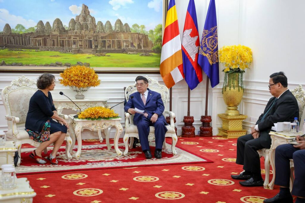 ភ្នំពេញ ៖ ឯកឧត្តមកិត្តិសេដ្ឋាបណ្ឌិត ជាម យៀប អនុប្រធានទី១ រដ្ឋសភា តំណាងដ៏ខ្ពង់ខ្ពស់របស់សម្តេចមហារដ្ឋសភាធិការធិបតី ឃួន សុដារី ប្រធានរដ្ឋសភានៃព្រះរាជាណាចក្រកម្ពុជា នាព្រឹកថ្ងៃទី២៥ ខែវិច្ឆិកា ឆ្នាំ២០២៥ បានអនុញ្ញាតឱ្យលោកជំទាវ អាឡូណា ហ្វីសស៊ឺ-ខេម (Alona Fisher-Kamm) ឯកអគ្គរដ្ឋទូត នៃរដ្ឋអ៊ីស្រាអែលចូលជួបសំដែងការគួរសមនិងពិភាក្សាការងារ នៅវិមានរដ្ឋសភា។