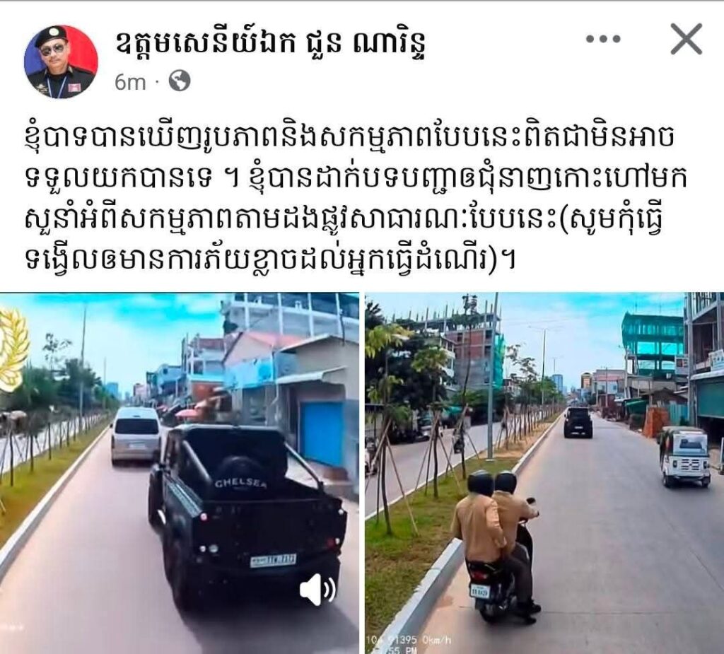 លោក ជួន ណារិន្ទ ស្នងការក្រុងភ្នំពេញ បានសរសេរបង្ហោះ នៅលើគណនីហ្វេសប៊ុក ផ្លូវការថា ៖ បានឃើញ រូបភាព និងសកម្មភាពបែបនេះ ពិតជាមិនអាចទទួលយកបានទេ!។