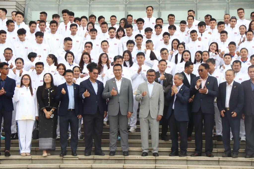 សូមរំលឹកថា ឯកឧត្តមបណ្ឌិតសភាចារ្យ ហង់ជួន ណារ៉ុន ឧបនាយករដ្ឋមន្ត្រី រដ្ឋមន្ត្រី ក្រសួងអប់រំ យុវជន និងកីឡា និងជាតំណាងដ៏ខ្ពង់ខ្ពស់សម្តេចមហាបវរធិបតី ហ៊ុន ម៉ាណែត នាយករដ្ឋមន្ត្រី នៃព្រះរាជាណាចក្រកម្ពុជា បានអញ្ជើញជាអធិបតីភាពក្នុងពិធីសំណេះសំណាលជាមួយ ប្រតិភូ កីឡាករ កីឡាការិនី គ្រូបង្វឹក គ្រូជំនួយ មុនទៅចូលរួមការប្រកួតកីឡា SEA Games លើកទី៣៣ ឆ្នាំ២០២៥ នៅព្រះរាជាណាចក្រថៃ នៅវិមានសន្តិភាពដោយមានការអញ្ជើញចូលរួមពីសំណាក់ឯកឧត្តម វ៉ាត់ ចំរើន រដ្ឋលេខាធិការ ឯកឧត្តម សាម៉ឺឌី ស៊ីវឌ្ឍនា រដ្ឋលេខាធិការ ។