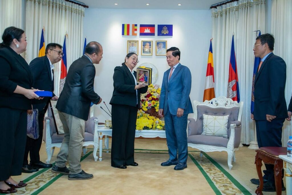 ភ្នំពេញ៖រាជធានីភ្នំពេញគឺជារាជធានីដែលមានការអភិវឌ្ឍរីកចម្រើនលើគ្រប់វិស័យ ហើយក៏ជាទីក្រុងដែលមានសោភ័ណ្ឌភាព មានសណ្ដាប់ធ្នាប់ល្អ ជាទីក្រុងមានភាពវៃឆ្លាត។ ក្រុងម៉ាណដាលូយ៉ុង ( Mandaluyong) នៃសាធារណរដ្ឋហ្វ៊ីលីពីន នឹងសិក្សារៀនសូត្រពីរាជធានីភ្នំពេញ លើការរៀបចំក្រុងពិសេស គឺការរៀបចំសណ្ដាប់ធ្នាប់នៃការកាត់ខ្សែកាប្លអុបទិក ខ្សែអ៊ីនធើណេតពីលើអាកាសទៅដាក់ក្រោមដី។នេះជាការលើកឡើងរបស់លោក ជំទាវ ខា មេលីតា មែនឈី អាហ្គីឡា អាបាឡូស ( Carmelita ” Menchie ” Aguilar Abalos ) អភិបាលក្រុងម៉ាណដាលូយ៉ុង ( Mandaluyong ) នៃសាធារណរដ្ឋហ្វ៊ីលីពីន ក្នុងឱកាសលោកជំទាវជំនួបសម្ដែងការគួរសម ជាមួយឯកឧត្ដម ឃួង ស្រេង អភិបាល នៃគណៈអភិបាលរាជធានីភ្នំពេញ នារសៀល ថ្ងៃ ទី២៧ ខែវិច្ឆិកា ឆ្នាំ ២០២៥នេះ នៅសាលារាជធានីភ្នំពេញ ។