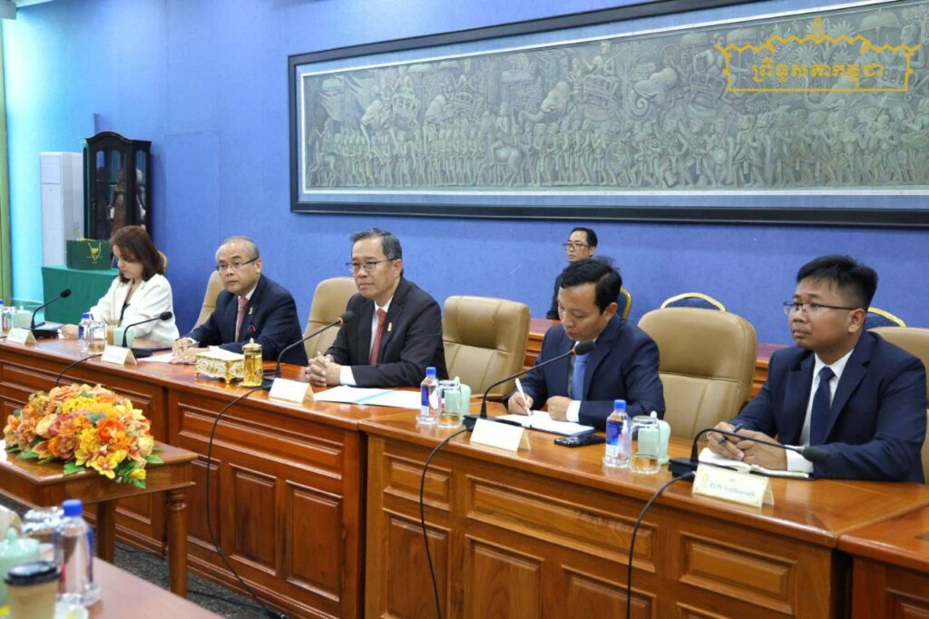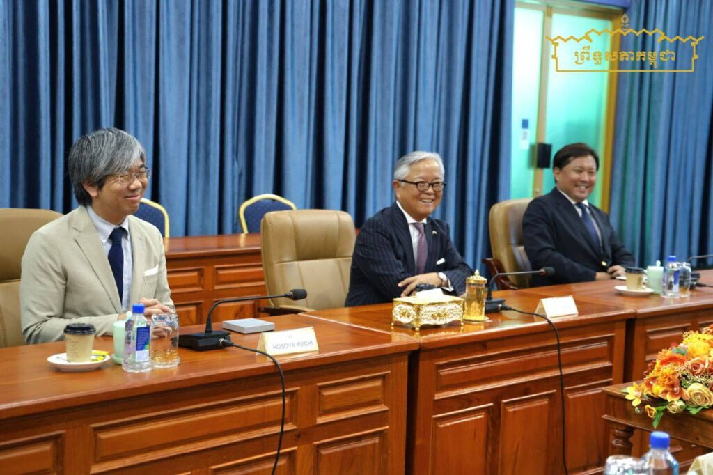 ឯកឧត្តមបណ្ឌិត ធន់ វឌ្ឍនា អនុប្រធានទី២ នៃព្រឹទ្ធសភា អមជាមួយឯកឧត្តមបណ្ឌិត ចែម វីឌ្យ៉ា ប្រធានគណៈកម្មការទី៥ ព្រឹទ្ធសភា និងថ្នាក់ដឹកនាំខុទ្ទកាល័យអនុប្រធានទីព្រឹទ្ធសភា បានអញ្ជើញទទួលជួបពិភាក្សាការងារជាមួយ ឯកឧត្តម UENO Atsushi ឯកអគ្គរដ្ឋទូតជប៉ុនប្រចាំព្រះរាជាណាចក្រកម្ពុជា រួមជាមួយលោកសាស្ត្រាចារ្យ Hosoya Yuichi អ្នកជំនាញនយោបាយអន្តរជាតិដ៏ល្បី មកពីសកលវិទ្យាល័យ Keio Tokyo និងសហការី នៅសាលពិសេស៣ វិមានព្រឹទ្ធសភានៅរសៀលថ្ងៃទី២៦ ខែវិច្ឆិកា ឆ្នាំ ២០២៥។