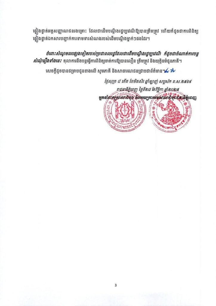 សំណុំរឿងទាំងបីខាងលើនេះ ចៅក្រមកំណត់កាលបរិច្ឆេទសវនាការនៅថ្ងៃទី១៦ ខែធ្នូ ឆ្នាំ២០២៥។