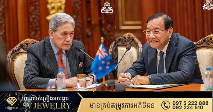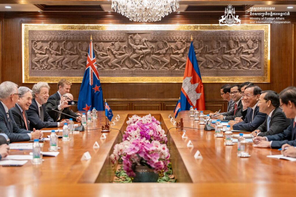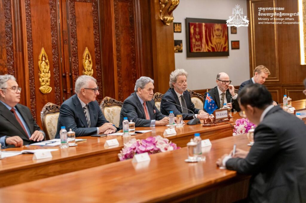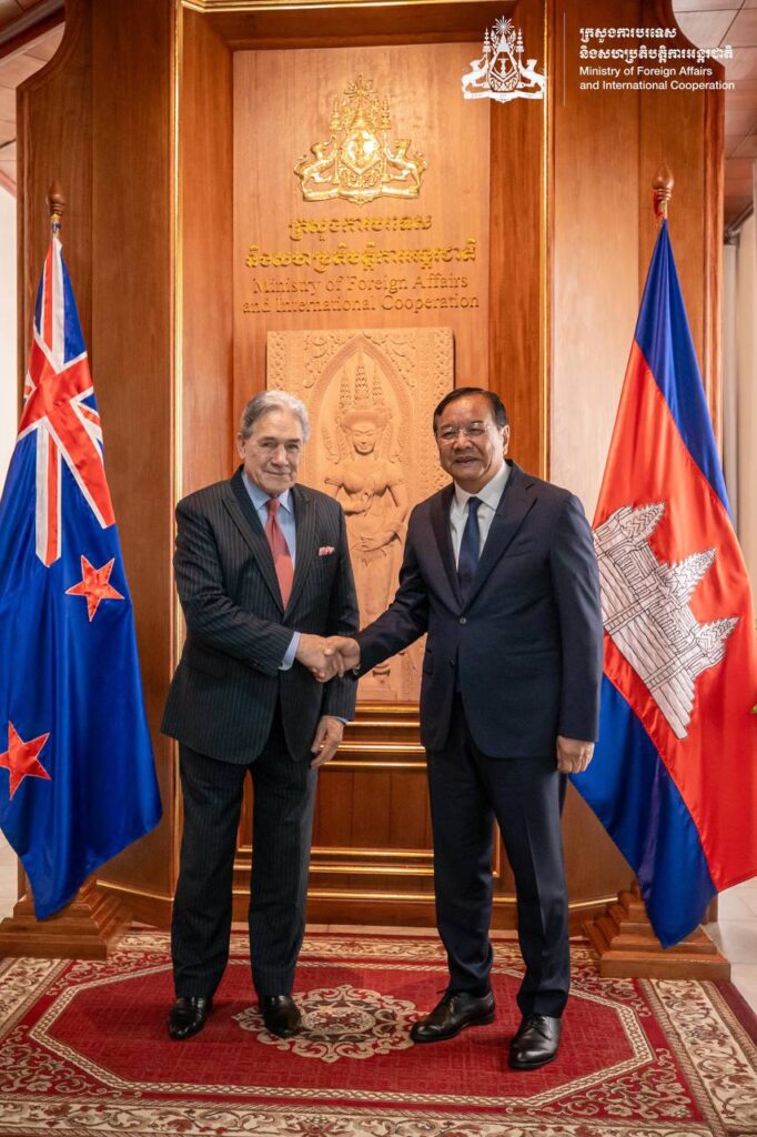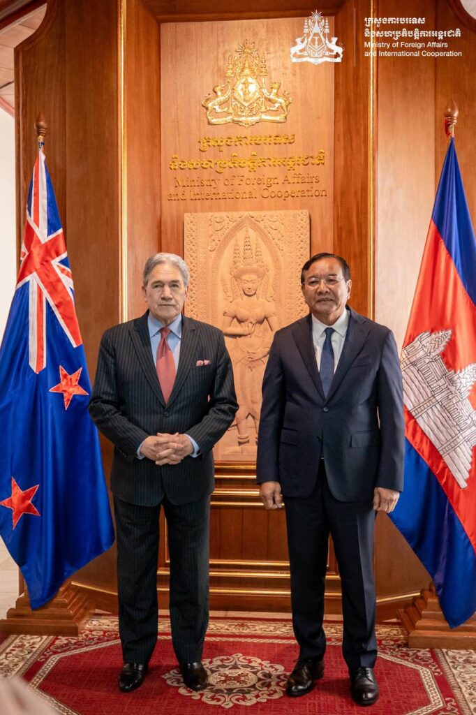 នៅព្រឹកថ្ងៃទី២៩ ខែវិច្ឆិកា ឆ្នាំ២០២៥ ឯកឧត្តមឧបនាយករដ្ឋមន្រ្តី ប្រាក់ សុខុន រដ្ឋមន្រ្តីការបរទេស និងសហប្រតិបត្តិការអន្តរជាតិ បានអញ្ជើញជួបពិភាក្សាការងារទ្វេភាគីជាមួយឯកឧត្តម វីនស្តុន ភីធឺរ រដ្ឋមន្រ្តីការបរទេសនូវែលសេឡង់ នៅទីស្ដីការក្រសួង។