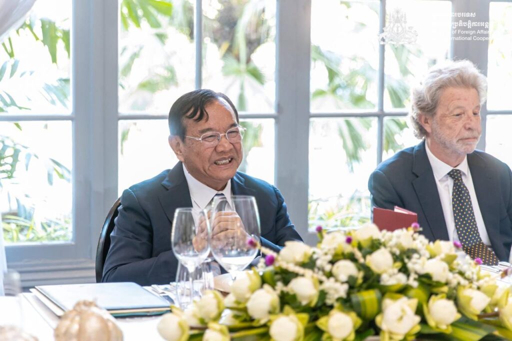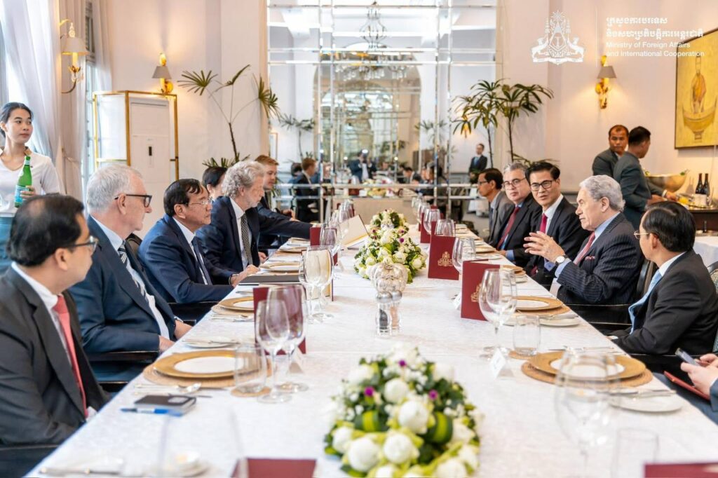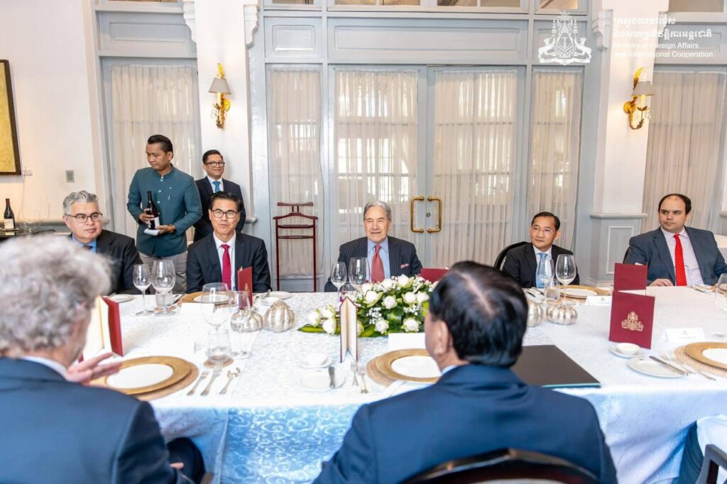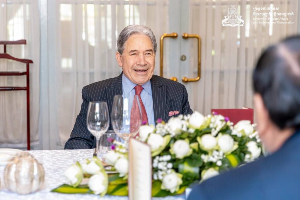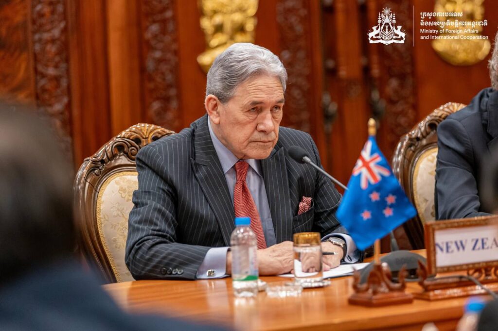 នៅព្រឹកថ្ងៃទី២៩ ខែវិច្ឆិកា ឆ្នាំ២០២៥ ឯកឧត្តមឧបនាយករដ្ឋមន្រ្តី ប្រាក់ សុខុន រដ្ឋមន្រ្តីការបរទេស និងសហប្រតិបត្តិការអន្តរជាតិ បានអញ្ជើញជួបពិភាក្សាការងារទ្វេភាគីជាមួយឯកឧត្តម វីនស្តុន ភីធឺរ រដ្ឋមន្រ្តីការបរទេសនូវែលសេឡង់ នៅទីស្ដីការក្រសួង។