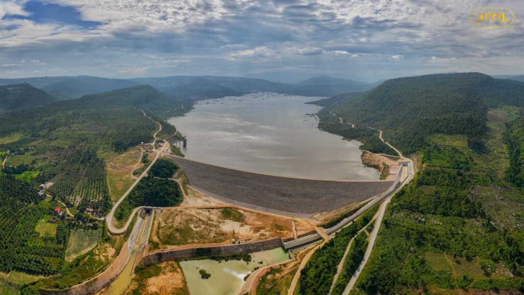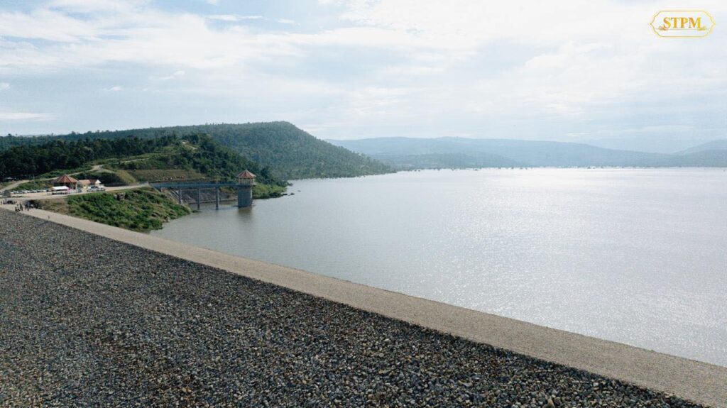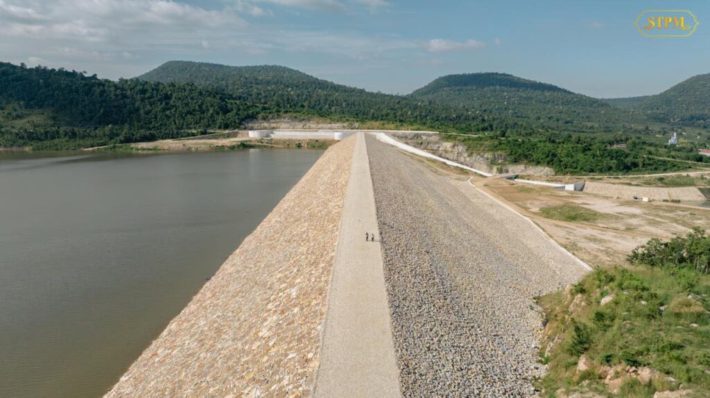 ទី១/ ទំនប់ស្នូលដីថ្មបំពេញ Earth-Core Rockfill Dam (ECRD) ដែលមានខ្នងលើទទឹង ៨ ម៉ែត្រ កម្ពស់ ៦០ ម៉ែត្រពីគ្រឹះ និងប្រវែងសរុប ៦៥៤ ម៉ែត្រ ដែលមានសមត្ថភាពផ្ទុកទឹកប្រសិទ្ធភាពបាន ១៣៣ លានម៉ែត្រគូប។