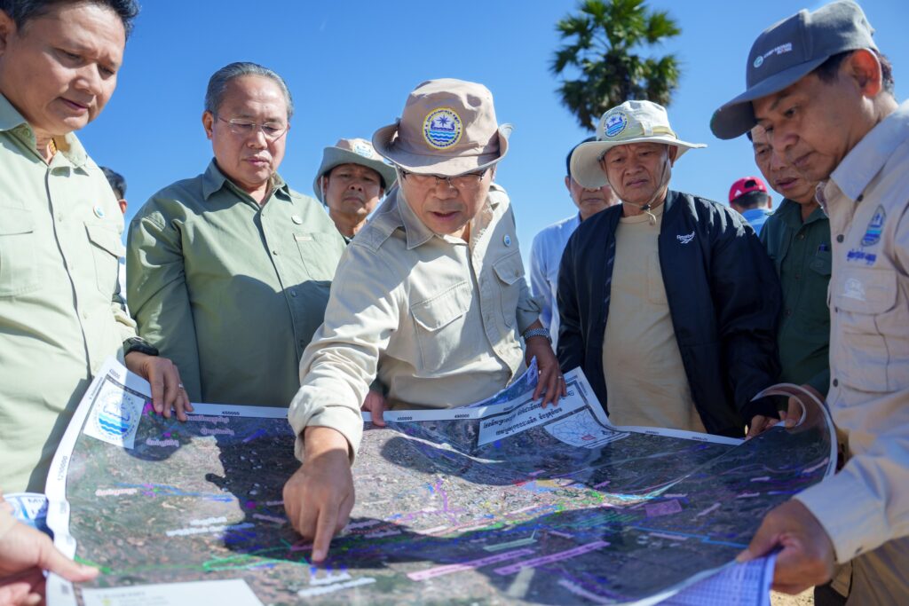 នាព្រឹកថ្ងៃអាទិត្យ ទី៣០ ខែវិច្ឆិកា ឆ្នាំ២០២៥នេះ ឯកឧត្តម ថោ ជេដ្ឋា រដ្ឋមន្ត្រីក្រសួងធនធានទឹក និងឧតុនិយម បានអញ្ជើញដឹកនាំមន្ត្រីបច្ចេកទេសក្រសួង និងមន្ទីរធនធានទឹក និងឧតុនិយមខេត្តតាកែវ និងខេត្តកណ្តាល ចុះពិនិត្យជាក់ស្តែងវឌ្ឍនភាពការងារប្រឡាយមេរលាំងជ្រៃខាងត្បូង(រលាំងជ្រៃ-ស្លាគូ) ស្ថិតក្នុងឃុំកាហែង ស្រុកសំរោងទង ខេត្តកំពង់ស្ពឺ ដែលសម្រេចបានប្រមាណ ៩៩%។