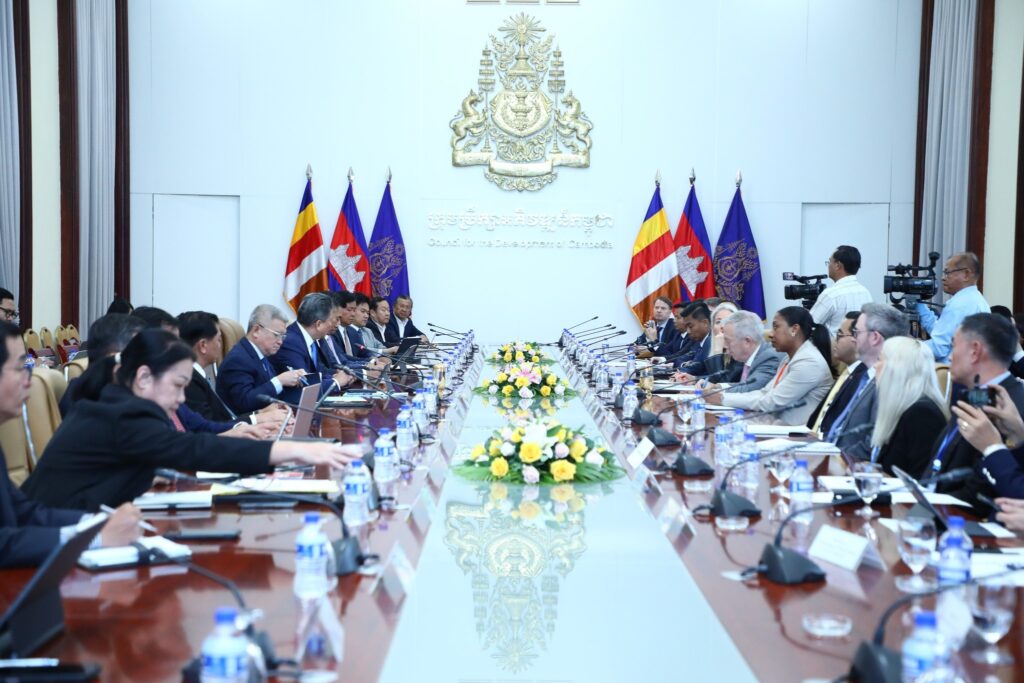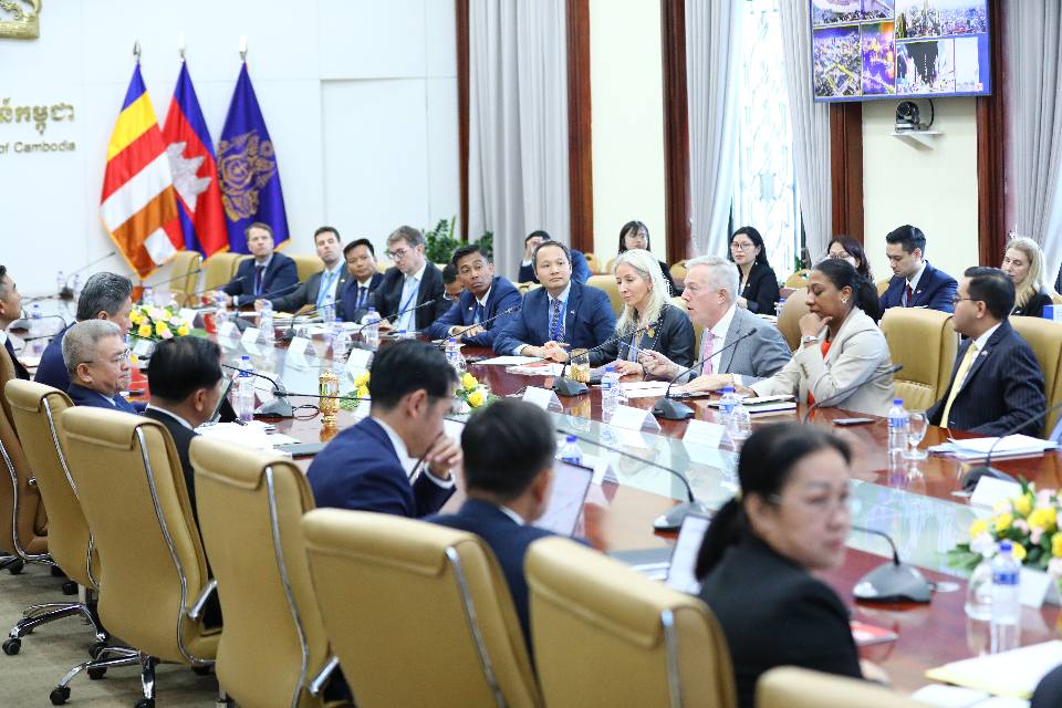 ភ្នំពេញ ៖ ឯកឧត្តម ស៊ុន ចាន់ថុល ឧបនាយករដ្ឋមន្ត្រី អនុប្រធានទី១ ក្រុមប្រឹក្សាអភិវឌ្ឍន៍កម្ពុជា បានអនុញ្ញាតឱ្យគណៈប្រតិភូក្រុមប្រឹក្សាធុរកិច្ច អាម៉េរិក-អាស៊ាន (US-ABC) ដឹកនាំដោយ ឯកឧត្តម Ted Osius (ឯកអគ្គរដ្ឋទូតអាម៉េរិកចូលនិវត្តន៍) អនុប្រធានជាន់ខ្ពស់ និងជានាយកគ្រប់គ្រងប្រចាំតំបន់នៃ US-ABC ជួបសម្តែងការគួរសម និងពិភាក្សាការងារ ក្រោមកិច្ចសម្របសម្រួលរបស់ លោកស្រី Bridgette L. Walker ភារៈធារីនៃស្ថានទូតសហរដ្ឋអាម៉េរិក ប្រចាំនៅព្រះរាជាណាចក្រកម្ពុជា។ជំនួបនេះ បានធ្វើឡើងនាក្រុមប្រឹក្សាអភិវឌ្ឍន៍កម្ពុជា នារសៀលថ្ងៃចន្ទ ទី១ ខែធ្នូ ឆ្នាំ២០២៥។