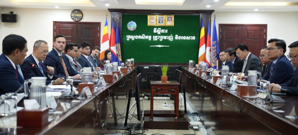 នារសៀលថ្ងៃទី២ ខែធ្នូ ឆ្នាំ២០២៥ ឯកឧត្តម ឌិត ទីណា រដ្ឋមន្រ្តីក្រសួងកសិកម្ម រុក្ខាប្រមាញ់ និងនេសាទ បានអញ្ជេីញទទួលជួបពិភាក្សាការងារជាមួយប្រតិភូ ក្រុមប្រឹក្សាធុរកិច្ចអាម៉េរិក-អាស៊ាន(US-ASEAN Business Council) ដឹកនាំដោយលោក Jack Myint និងតំណាងក្រុមហ៊ុនធំៗជាសមាជិក ដើម្បីពិភាក្សាអំពីកិច្ចសហប្រតិបត្តិការ និងកាលានុវត្តភាពវិនិយោគក្នុងវិស័យកសិកម្មកម្ពុជា។