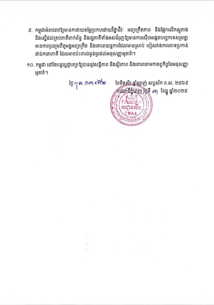 ១០. កម្ពុជា នៅតែបន្តប្តេជ្ញារក្សាឱ្យបាននូវសន្តិភាព និងស្ថិរភាព និងគោរពតាមកាតព្វកិច្ចនៃអនុសញ្ញាអូតាវ៉ា៕ រក្សាសិទ្ធដោយ៖សុទ្ធលី