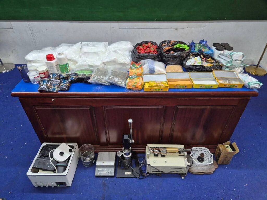 ចំពោះវត្ថុតាងចាប់យករួមមាន៖ គ្រឿងញៀនប្រភេទកូកាអ៊ីន (Cocaine) ទម្ងន់ ១២,១៧៤.៨៩ក្រាម, គ្រឿងញៀនប្រភេទអ៊ិចស្ត្រាស៊ី (MDMA) ទម្ងន់៥,៨២១.៥៨ក្រាម, គ្រឿងញៀនប្រភេទ រុក្ខជាតិក្រៀម (កញ្ចា) ទម្ងន់ ៤៧៥.៤២ក្រាម, សារធាតុគីមីផ្សំ ទម្ងន់២២,៨៨៤ក្រាម។ សរុបរួមសារធាតុញៀនទម្ងន់ ១៧,៩៩៦.៤៧ក្រាម (១៧គីឡូ៩៩៦,៤៧ក្រាម), សរុបរួមសារធាតុគីមីផ្សំ ទម្ងន់២២,៨៨៤ក្រាម (២២គីឡូ ៨៨៤ក្រាម) ព្រមទាំងចាប់យកសម្ភារៈរួមមាន៖ ឧបករណ៍សម្រាប់ផលិត និងប្រើប្រាស់គ្រឿងញៀនមួយចំនួនធំ។