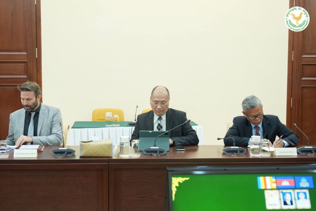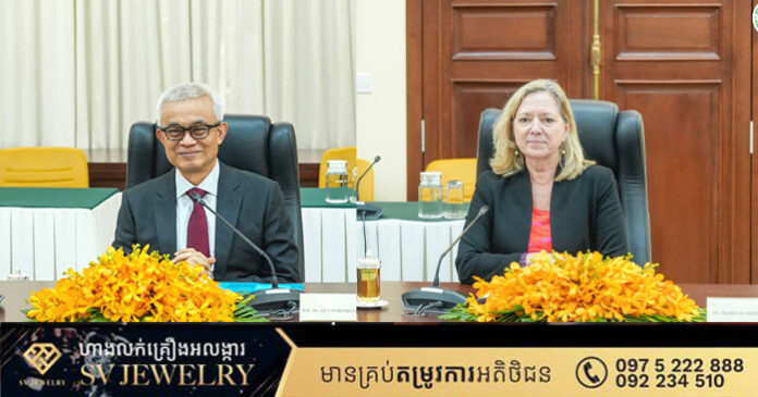 រាជធានីភ្នំពេញ៖ នៅព្រឹកថ្ងៃ អង្គារ ទី ២ ខែ ធ្នូ ឆ្នាំ ២០២៥, នៅទីស្តីការក្រសួងសេដ្ឋកិច្ច និងហិរញ្ញវត្ថុ, ឯកឧត្តមអគ្គបណ្ឌិត សភាចារ្យ អូន ព័ន្ធមុនីរ័ត្ន ឧបនាយករដ្ឋមន្ត្រី រដ្ឋមន្ត្រីក្រសួងសេដ្ឋកិច្ច និងហិរញ្ញវត្ថុ បានអនុញ្ញាតទទួលជួប ពិភាក្សាការងារជាមួយលោកស្រី ម៉ារីយ៉ាម សឺរមែន (Mariam J. Sherman), នាយកគ្រប់គ្រង នៃធនាគារ ពិភពលោក ប្រចាំប្រទេសកម្ពុជា, វៀតណាម, និងឡាវ (World Bank’s Director Division for Vietnam, Cambodia, and Lao PDR) ។