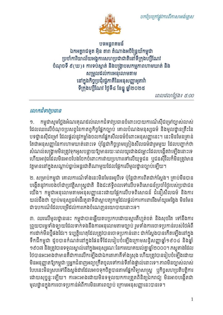 កម្ពុជាត្រៀមខ្លួនជាស្រេច ដើម្បីចូលរួមប្រកបដោយភាពស្ថាបនា តម្លាភាព និងការអនុលោម តាមគោលការណ៍ដែលបានណែនាំនៅក្នុអនុសញ្ញានេះ៕ រក្សាសិទ្ធដោយ៖សុទ្ធលី