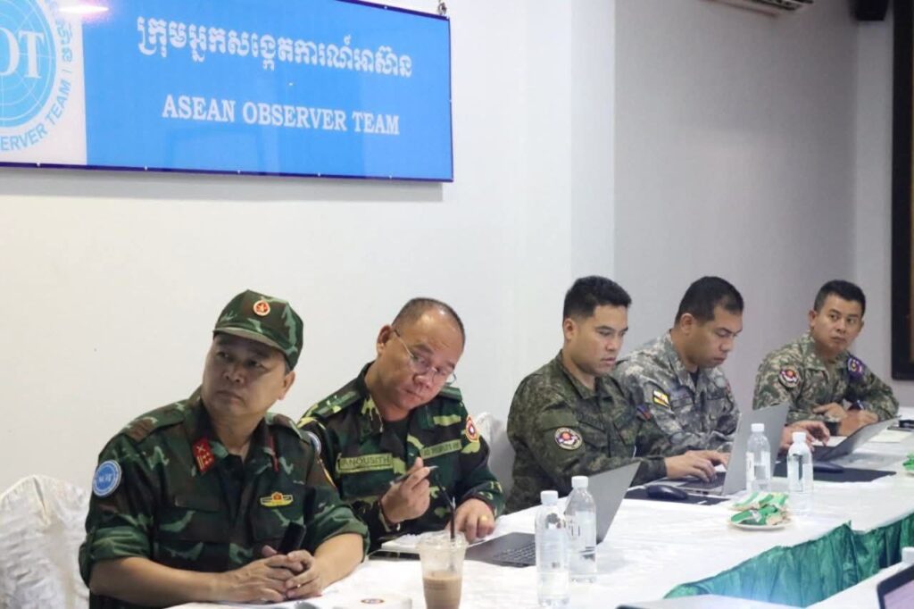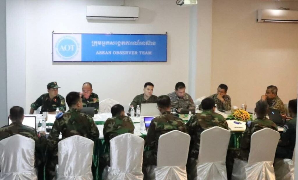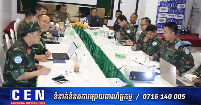ភ្នំពេញ ៖ លោកជំទាវ ឧត្តមសេនីយ៍ឯក ម៉ាលី សុជាតា អ្នកនាំពាក្យក្រសួងការពារជាតិ នៃព្រះរាជាណាចក្រកម្ពុជា សូមជម្រាបជូនសាធារណជន អ្នកសារព័ត៌មានជាតិ និងអន្តរជាតិមេត្តាជ្រាបថា៖ នៅថ្ងៃសុក្រ ទី៥ ខែធ្នូ ឆ្នាំ២០២៥ វេលាម៉ោង ០៩:៣០នាទីព្រឹក ក្រុមការងារសម្របសម្រួលអ្នកសង្កេតការណ៍របស់ក្រសួងការពារជាតិ នៃព្រះរាជាណាចក្រកម្ពុជា (CLG) បានធ្វើការសម្របសម្រួលជូនដល់ក្រុមអ្នកសង្កេតការណ៍អាស៊ាន (AOT) ទទួលស្តាប់បទបង្ហាញពីលោក ព្រំសឿន វឌ្ឍន: ប្រធានក្រុមវាស់វែងចម្រុះកម្ពុជា-ថៃ នៃរដ្ឋលេខាធិការដ្ឋានកិច្ចការព្រំដែន ស្តីពីវឌ្ឍនភាព នៃការបោះបង្គោលព្រំដែនលេខ ៥២-៥៩ (ឃុំកំរៀង និងឃុំបឹងរាំង ស្រុកកំរៀង ខេត្តបាត់ដំបង) នៅទីស្នាក់ទី២ ក្រុងសិរីសោភ័ណ ខេត្តបន្ទាយមានជ័យ ។