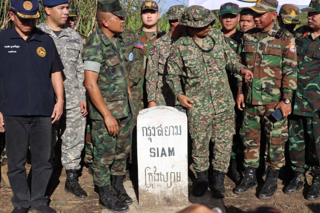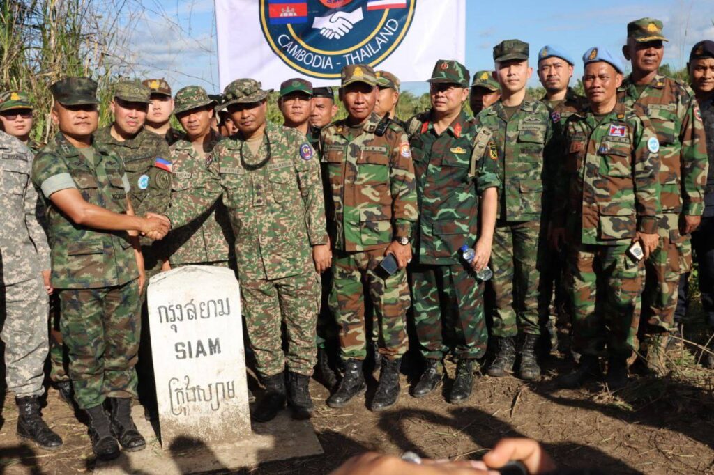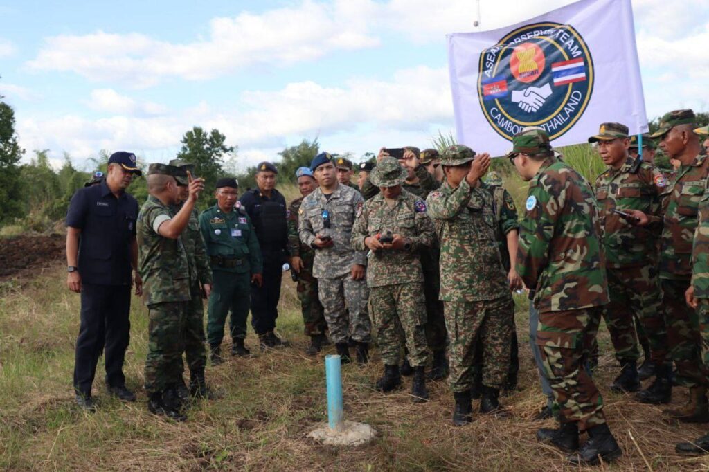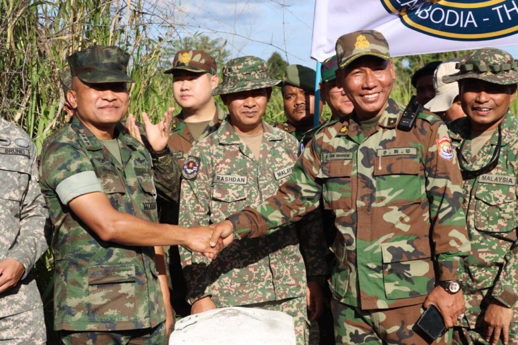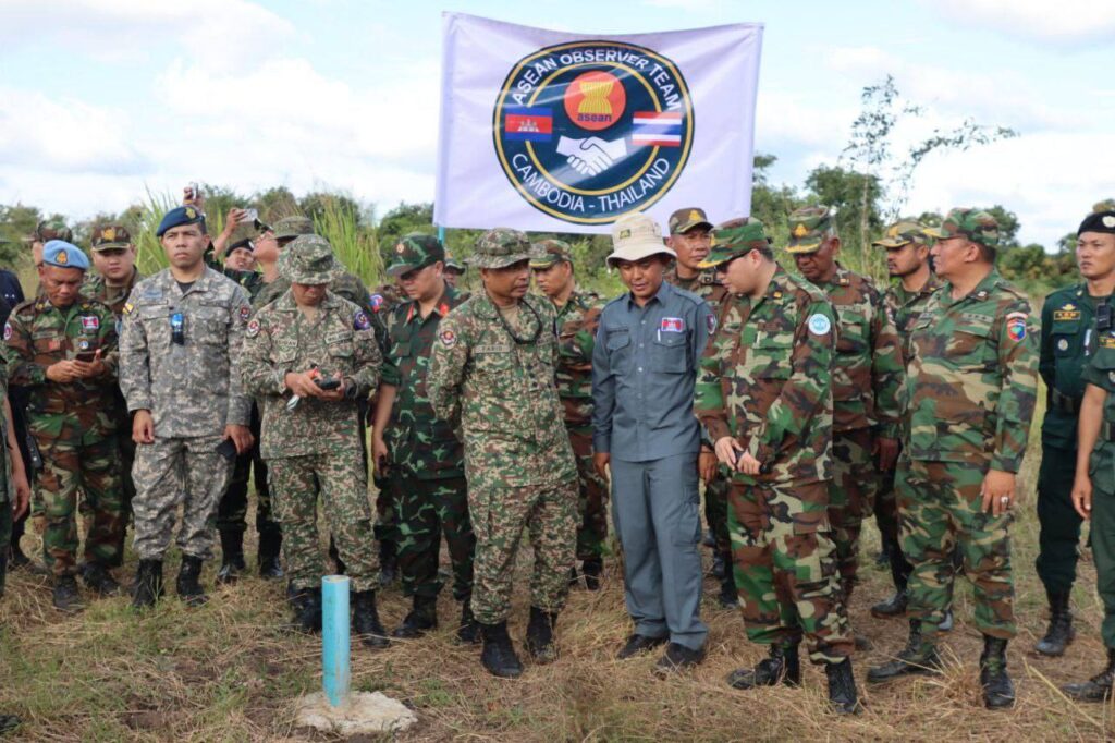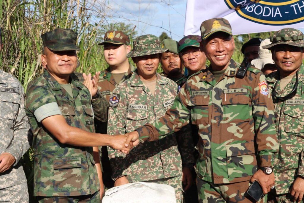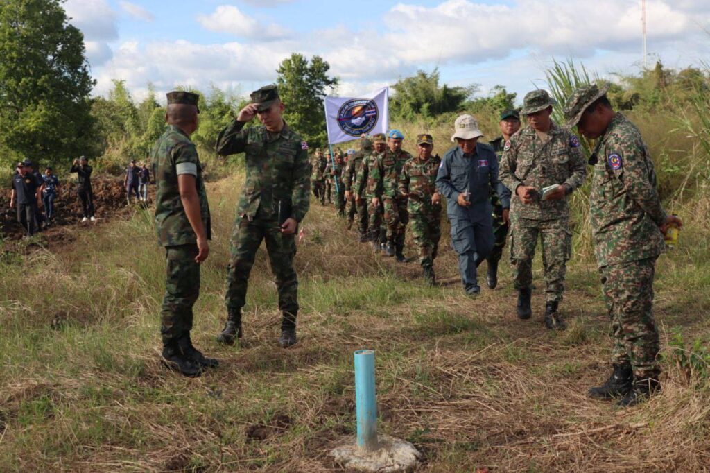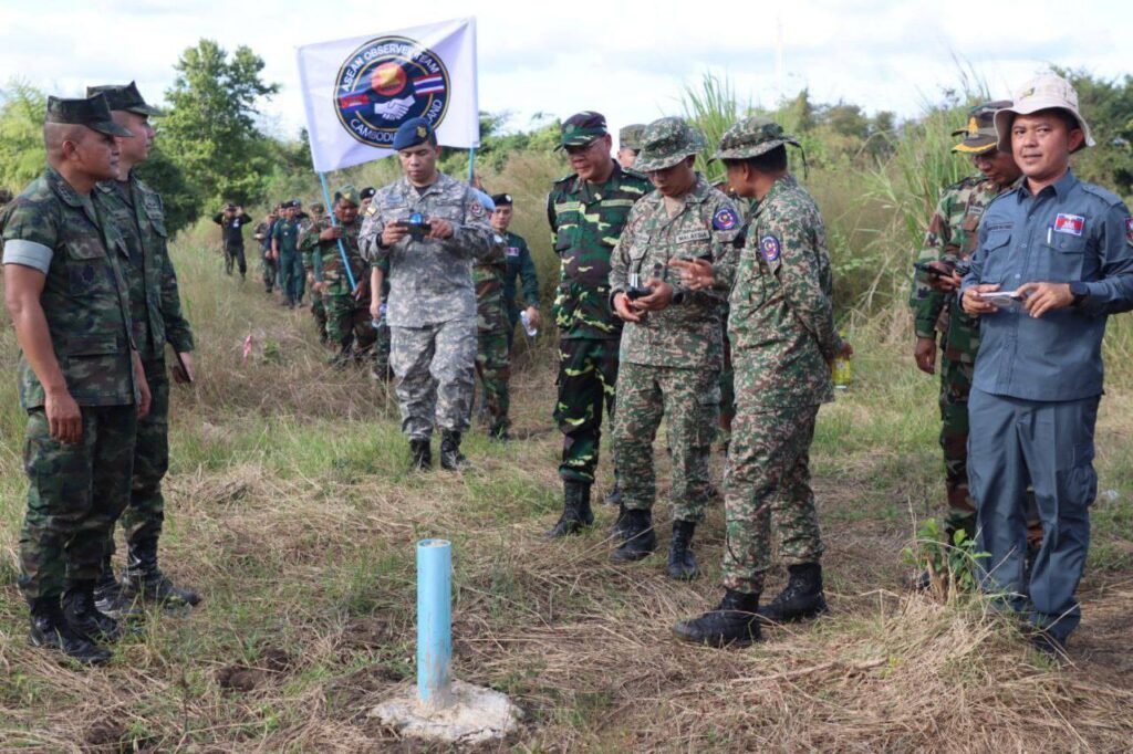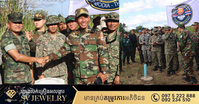 លោកជំទាវ ឧត្តមសេនីយ៍ឯក ម៉ាលី សុជាតា អ្នកនាំពាក្យក្រសួងការពារជាតិ នៃព្រះរាជាណាចក្រកម្ពុជា សូមជម្រាបជូនសាធារណជន អ្នកសារព័ត៌មានជាតិ និងអន្តរជាតិមេត្តាជ្រាបថា៖ នៅរសៀល ថ្ងៃសុក្រ ទី៥ ខែធ្នូ ឆ្នាំ២០២៥ វេលាម៉ោង ១៤:៥៤នាទី ក្រុមសម្របសម្រួលកម្ពុជា (CLG) នៃព្រះរាជាណាចក្រកម្ពុជា បានសម្របសម្រួលជូនដល់ក្រុមអ្នកសង្កេតការណ៍អាស៊ាន (AOT) ចុះពិនិត្យ និងសង្កេតការណ៍ នៅចំណុចបង្គោលព្រំដែនលេខ ៥២-៥៣ នៅឃុំកំរៀង និងឃុំបឹងរាំង ស្រុកកំរៀង ខេត្តបាត់ដំបង ទល់មុខខេត្តចន្ទបុរី ប្រទេសថៃ។