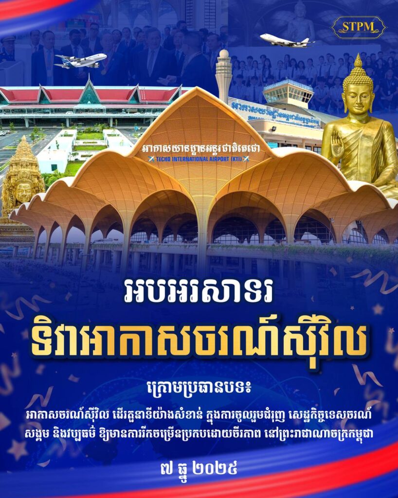 ភ្នំពេញ ៖ សម្តេចបវរធិបតី ហ៊ុន ម៉ាណែត នាយករដ្ឋមន្រ្តីនៃព្រះរាជាណាចក្រកម្ពុជា បានថ្លែងអបអរសាទរ ទិវាជាតិអាកាសចរណ៍ស៊ីវិលលើកទី១ ក្រោមប្រធានបទ «អាកាសចរណ៍ស៊ីវិល ដើរតួនាទីយ៉ាងសំខាន់ ក្នុងការចូលរួមជំរុញសេដ្ឋកិច្ច ទេសចរណ៍ សង្គមនិងវប្បធម៌ ឱ្យមានការរីកចម្រើនប្រកប ដោយចីរភាពនៅព្រះរាជាណាចក្រកម្ពុជា» ដែលជាប្រធានបទដ៏សំខាន់មួយសម្រាប់បង្កើនការយល់ដឹងកាន់តែ ទូលំទូលាយក្នុងចំណោមពលរដ្ឋទូទាំងប្រទេស បណ្តាស្ថាប័នរដ្ឋាភិបាល ស្ថាប័ននីតិប្បញ្ញត្តិ ស្ថាប័នតុលាការ និង បណ្តាភាគីពាក់ព័ន្ធផ្សេងៗទៀត អំពីសារៈសំខាន់នៃវិស័យអាកាសចរណ៍ស៊ីវិល មិនគ្រាន់តែចូលរួមចំណែកក្នុងការ រក្សាបាន និងលើកកម្ពស់នូវសុវត្ថិភាពនិងសន្តិសុខដល់បងប្អូនជនរួមជាតិក្នុងការធ្វើដំណើរតាមផ្លូវអាកាសប៉ុណ្ណោះទេ វិស័យអាកាសចរណ៍ស៊ីវិលថែមទាំងបានជួយលើកកម្ពស់វិស័យទេសចរណ៍ ដែលជាវិស័យគន្លឹះសំខាន់មួយនៃ សេដ្ឋកិច្ចជាតិ តាមរយៈការកែលម្អសេវាកម្មអាកាសចរណ៍ និងការសាងសង់អាកាសយានដ្ឋានទំនើបៗ បានធ្វើ ឱ្យមានការទាក់ទាញភ្ញៀវទេសចរច្រើនជាងមុន មកពីបណ្តាប្រទេសនានាជុំវិញពិភពលោក ដោយជួយបង្កើន ចំណូលជាតិ បង្កើតការងារ និងឱកាសអាជីវកម្មថ្មីៗ។