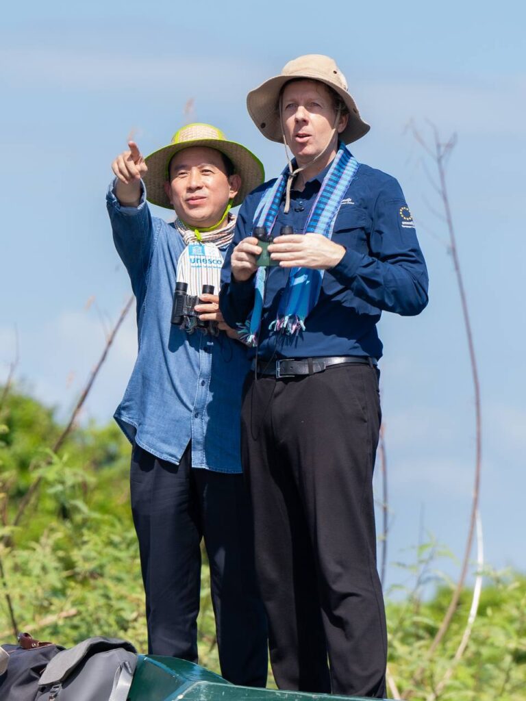 សៀមរាប-បាត់ដំបង : នាព្រឹកថ្ងៃទី៦ ខែធ្នូ ឆ្នាំ២០២៥ និងតាមកិច្ចពិភាក្សារួមគ្នាក្នុងជំនួបសំដែងការគួរសម និងពិភាក្សាការងារកាលពីថ្ងៃទី១១ ខែសីហា ឆ្នំា២០២៥ កន្លងមក ឯកឧត្តម ហួត ហាក់ រដ្ឋមន្ត្រីក្រសួងទេសចរណ៍ និងឯកឧត្តម Igor Driesmans ឯកអគ្គរដ្ឋទូតសហភាពអឺរ៉ុបប្រចាំកម្ពុជា បានដឹកនាំគណៈប្រតិភូពីក្រសួងទេសចរណ៍ និងសហភាពអឺរ៉ុបប្រចាំកម្ពុជា អញ្ជើញធ្វើទស្សនកិច្ចសិក្សាស្វែងយល់ និងវាយតម្លៃជាក់ស្តែងពីសក្តានុពលទេសចរណ៍ បញ្ហាប្រឈម និងកាលានុវត្តវិនិយោគនៅសហគមន៍អេកូទេសចរណ៍ព្រែកទាល់ដែលស្ថិតនៅក្នុងតំបន់ជីវៈចម្រុះរបស់បឹងទន្លេសាប ក្នុងភូមិព្រែកទាល់ ឃុំកោះជីវាំង ស្រុកឯកភ្នំ ខេត្តបាត់ដំបង។
