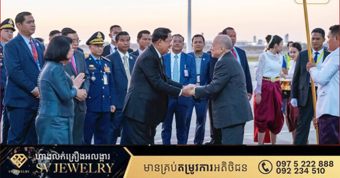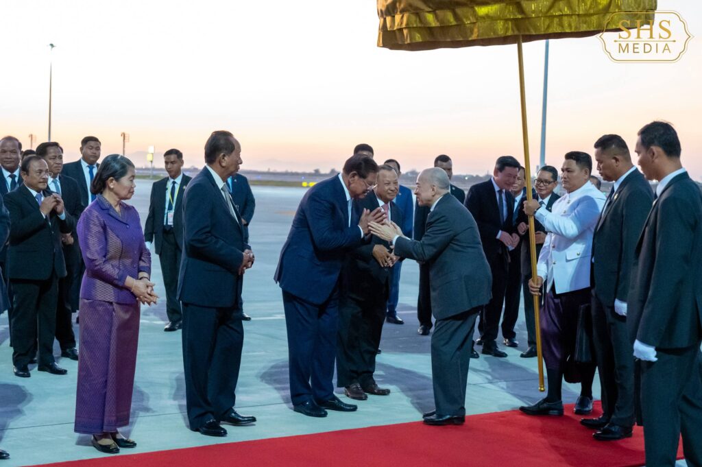 ភ្នំពេញ ៖ នៅរសៀល ថ្ងៃអាទិត្យ ២រោច ខែមិគសិរ ឆ្នាំម្សាញ់ សប្តស័ក ព.ស. ២៥៦៩ ត្រូវនឹង ថ្ងៃទី៧ ខែធ្នូ ឆ្នាំ២០២៥ ព្រះករុណាព្រះបាទសម្ដេច ព្រះបរមនាថ នរោត្តម សីហមុនី ព្រះមហាក្សត្រ នៃព្រះរាជាណាចក្រកម្ពុជា យាងនិវត្តន៍មកមាតុប្រទេសវិញដោយសុវត្ថិភាព របន្ទាប់ពីព្រះអង្គបានយាងចូលរួមកម្មវិធីបណ្ឌិត្យសភាវិទ្យាសាស្រ្ត នៅទីក្រុងប៉ារីស ប្រទេសបារាំង។