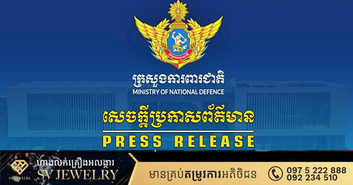 ក្រសួងការពារជាតិ នៃព្រះរាជាណាចក្រកម្ពុជា សូមបញ្ជាក់សាជាថ្មីនូវការប្តេជ្ញាចិត្តយ៉ាងម៉ឺងម៉ាត់ ក្នុងការគោរព និងការអនុវត្ត នូវកិច្ចព្រមព្រៀងបទឈប់បាញ់និងសេចក្តីថ្លែងការណ៍រួមស្តីពីសន្តិភាពរវាងកម្ពុជានិងថៃ ឱ្យបានពេញលេញ និងខ្ជាប់ខ្ជួនបំផុត ព្រមទាំងបន្តសហការគ្នាឱ្យបានជិតស្និទ្ធនៅគ្រប់កម្រិត សំដៅស្វែងរកកិច្ចសហប្រតិបត្តិការជាក់ស្តែងដើម្បីលើកកម្ពស់ សន្តិភាព និងស្ថិរភាពរវាងប្រទេសទាំងពីរ ក៏ដូចជាការវិលត្រឡប់ទៅរកប្រក្រតីភាពឡើងវិញឱ្យបានឆាប់រហ័ស៕ រក្សាសិទ្ធដោយ៖សុទ្ធលី