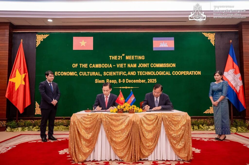 ភ្នំពេញ ៖ នៅរសៀលថ្ងៃទី០៩ ខែធ្នូ ឆ្នាំ២០២៥ ឯកឧត្តមឧបនាយករដ្ឋមន្ត្រី ប្រាក់ សុខុន រដ្ឋមន្ត្រីក្រសួងការបរទេស និងសហប្រតិបត្តិការអន្តរជាតិ បានអញ្ជើញធ្វើជាសហប្រធានជាមួយ ឯកឧត្តម ឡេ ហ័យជុង រដ្ឋមន្ត្រីក្រសួងការបរទេស នៃសាធារណរដ្ឋសង្គមនិយមវៀតណាម ក្នុងកិច្ចប្រជុំលើកទី២១ នៃគណៈកម្មការចម្រុះ កម្ពុជា-វៀតណាម ស្តីពីកិច្ចសហប្រតិបត្តិការសេដ្ឋកិច្ច វប្បធម៌ វិទ្យាសាស្ត្រ និងបច្ចេកវិទ្យា នៅខេត្តសៀមរាប ព្រះរាជាណាចក្រកម្ពុជា។