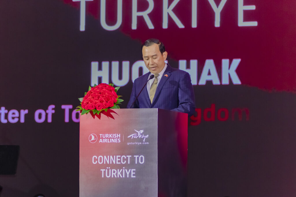 ថ្ងៃទី១១ ខែធ្នូ ឆ្នាំ២០២៥ នៅអាកាសយានដ្ឋានអន្តរជាតិតេជោ បានថ្លែងថា ក្នុងនាមរដ្ឋលេខាធិការដ្ឋានអាកាសចរស៊ីវិល ខ្ញុំមានសេចក្តីសោមនស្សរីករាយជាអធិបតីក្នុងពិធីសម្ពោធការហោះហើរត្រង់នៃការបើកការហោះហើរតាមកាលវិភាគលើកទី 1 ដែលដំណើរការដោយក្រុមហ៊ុនអាកាសចរណ៍ទួរគី រវាងទីក្រុងអ៊ីស្តង់ប៊ុលនៃសាធារណរដ្ឋទួរគី និងរាជធានីភ្នំពេញនៃព្រះរាជាណាចក្រកម្ពុជា។ សេវាកម្មផ្លូវអាកាសថ្មីនេះដំណើរការជាមួយយន្តហោះ Boeing 777-300ER និងជើងហោះហើរ 3 ដងក្នុងមួយសប្តាហ៍ ដែលចាប់ផ្តើមពីថ្ងៃនេះ 11 ធ្នូ 2025 គឺជាសមិទ្ធិផលដ៏សំខាន់ក្នុងការអភិវឌ្ឍន៍អាកាសចរណ៍របស់យើង ហើយឆ្លុះបញ្ចាំងពីតួនាទីដែលកំពុងរីកចម្រើនរបស់កម្ពុជាក្នុងនាមជាប្រទេសដែលមានថាមពល និងការតភ្ជាប់ក្នុងតំបន់ និងលើសពីនេះ។