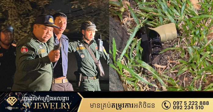 ភ្នំពេញ ៖ ជនសង្ស័យម្នាក់បានដកកាំភ្លើងខ្លីមួយដេីមបាញ់ ត ដៃជាមួយសមត្ថកិច្ចជាច្រេីនគ្រាប់ បន្ទាប់ពីសមត្ថកិច្ចល្បាតមានការសង្ស័យបានហៅឲ្យឈប់ដេីម្បីធ្វេីការត្រួតពិនិត្យ តែមិនព្រមឈប់បែជារត់គេចខ្លួនដល់ក្រោមស្ពានជ្រោយចង្វាបានផ្ដួលម៉ូតូ SUZUKI NEX ពាក់ផ្លាកលេខ ភ្នំពេញ 1HH-8184 រួចដកកាំភ្លេីងបាញ់ទៅលេីសមត្ថកិច្ច តែត្រូវសមត្ថកិច្ចឃាត់បាន។