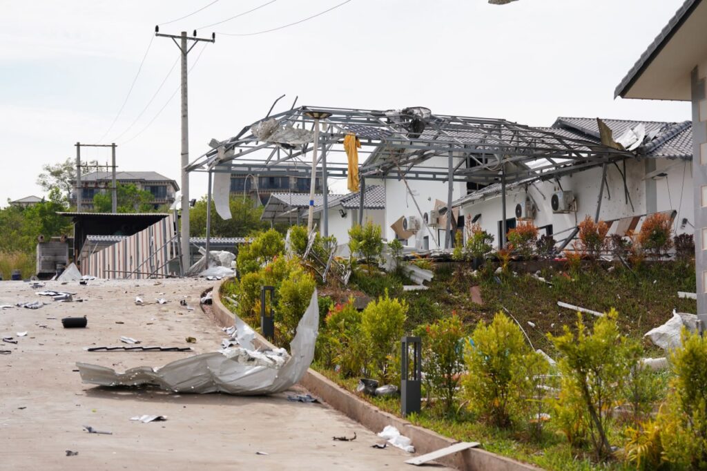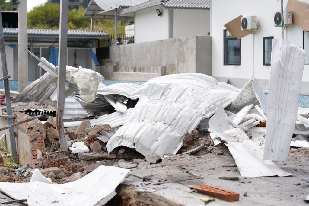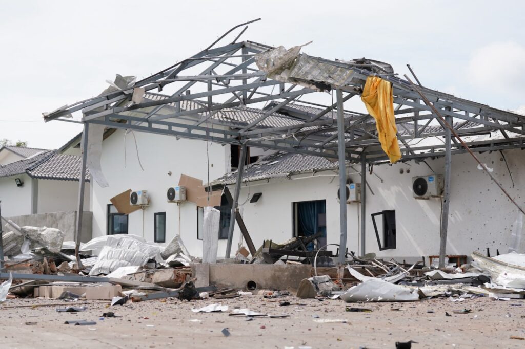 ផ្ទះសម្បែងរបស់ប្រជាពលរដ្ឋ និងអគារស្នាក់នៅរបស់អ្នកវិនិយោគជាជនជាតិចិនជាដើម បានរងការបាក់បែក និងខូចខាតដោយសារទម្ងន់គ្រាប់របស់កងទ័ពថៃ៕រក្សាសិទ្ធដោយ៖សុទ្ធលី