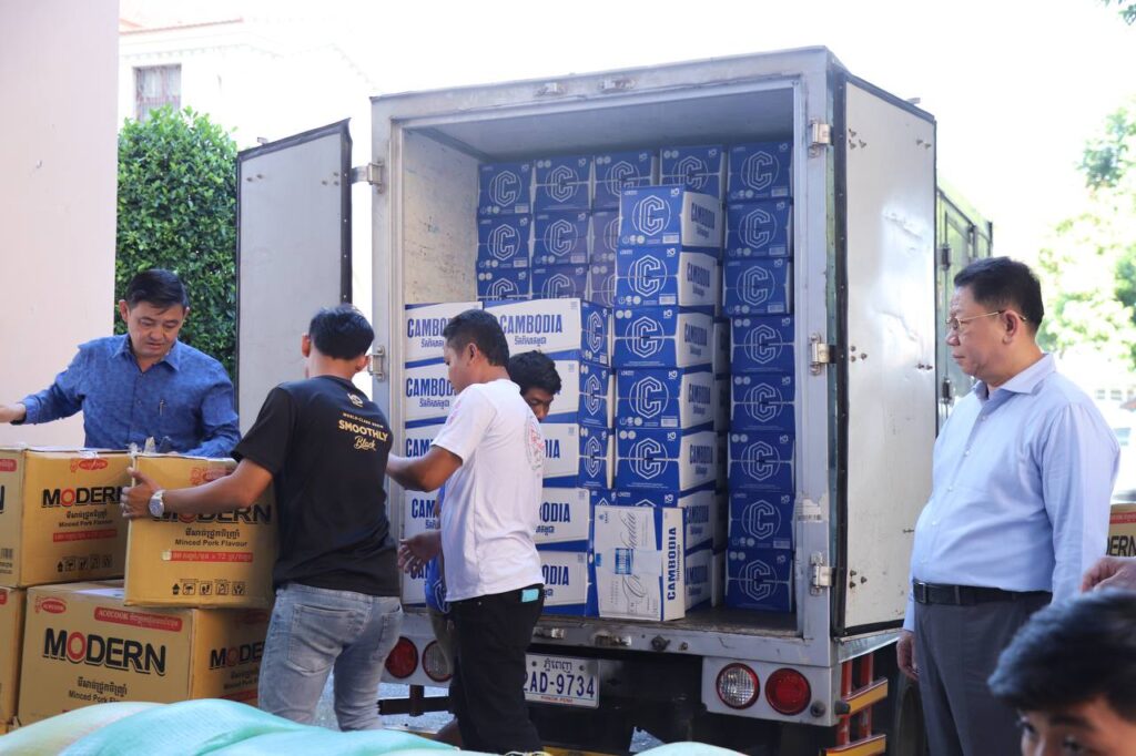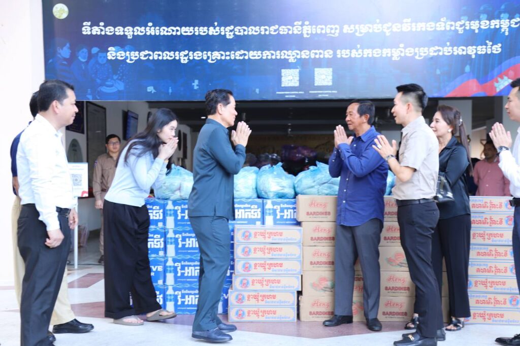 ភ្នំពេញ៖នៅរសៀលថ្ងៃទី១២ធ្នូ២០២៥នេះឯកឧត្ដមឃួង ស្រេង អភិបាលរាជធានីភ្នំពេញ និងលោកជំទាវ បានអញ្ជើញទទួលអំណោយពីសប្បុរសជននានាបាននិងកំពុងបន្តនាំយកអំណោយទាំងនេះមកប្រគល់ជូនរដ្ឋបាលរាជធានីភ្នំពេញ ដើម្បីត្រៀមរៀបចំបែងចែក ជូន បងប្អូនកងទ័ពជួរមុខ និងបងប្អូនប្រជាពលរដ្ឋជម្លៀសខ្លួនទៅតាមមណ្ឌលសុវត្ថិភាពនានា ក្រោយពីមានផ្ទុះសង្គ្រាមជាថ្មីពីក្រុមទាហានថៃឈ្លានពានចូលបូរណៈភាពទឹកដីកម្ពុជា។