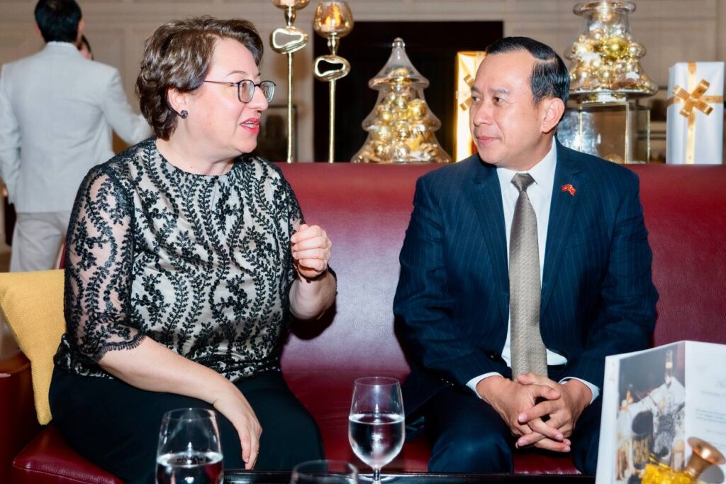 ថ្លែងក្នុងឱកាសនេះ ឯកឧត្តមរដ្ឋមន្រ្តី ក៏បានថ្លែងអំណរគុណជូនលោកជំទាវទូត និងគ្រប់ភាគីពាក់ព័ន្ធទាំងអស់ដែលបានប្រឹងប្រែងយ៉ាងសកម្ម និងស្វិតស្វាញរហូតបានសម្រេចសមិទ្ធិផលប្រកបដោយផ្លែផ្កា និងគួរជាទីមោទនៈ សម្រាប់ប្រទេសទាំងពីរនាថ្ងៃនេះ ក្រោមការដឹកនាំចង្អុល និងអនុសាសន៍ដ៏ខ្ពង់ខ្ពស់ របស់សម្តេចមហាបវរធិបតី ហ៊ុន ម៉ាណែត នាយករដ្ឋមន្រ្តីនៃព្រះរាជាណាចក្រកម្ពុជា។