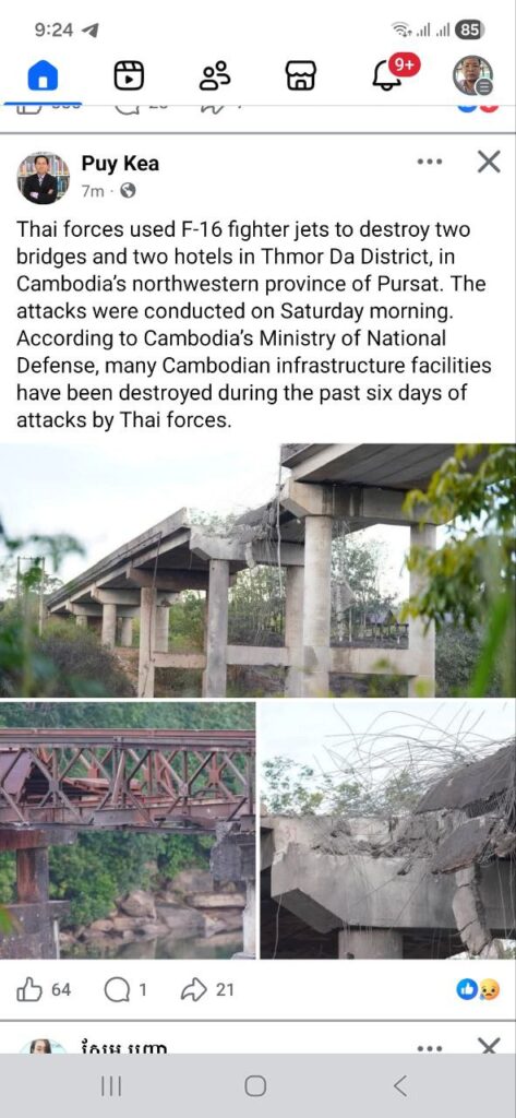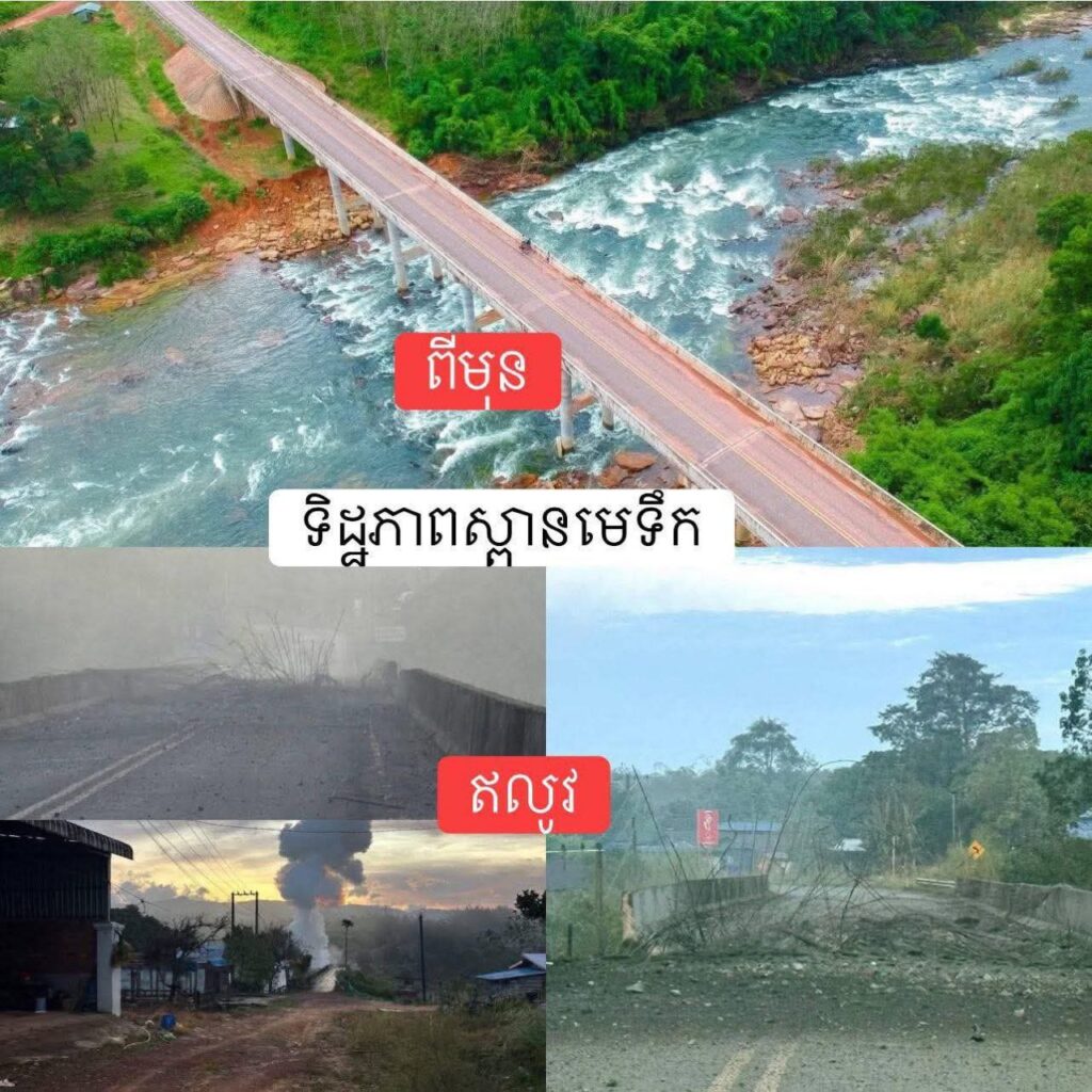 ភ្នំពេញ ៖ ទាហានសៀម ប្រើ F16 បាញ់ដាច់ស្ពានមេទឹក នៅវេលាម៉ោងជាង៦ទៀបភ្លឺ ថ្ងៃទី១៣ ខែធ្នូ ២០២៥